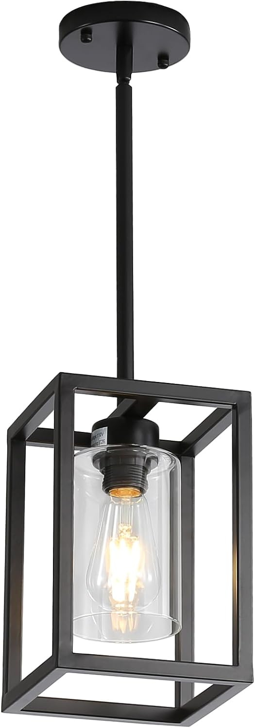This 1-Light Black Farmhouse Pendant Light combines a sleek black metal cage with a clear glass shade, creating a modern yet rustic look. Perfect for kitchen islands, dining areas, entryways, or hallways, the adjustable hanging chain allows you to set the ideal height. Its durable metal construction and classic design provide long-lasting functionality while enhancing your home décor. Ideal for residential or small commercial spaces looking for a stylish lighting solution.