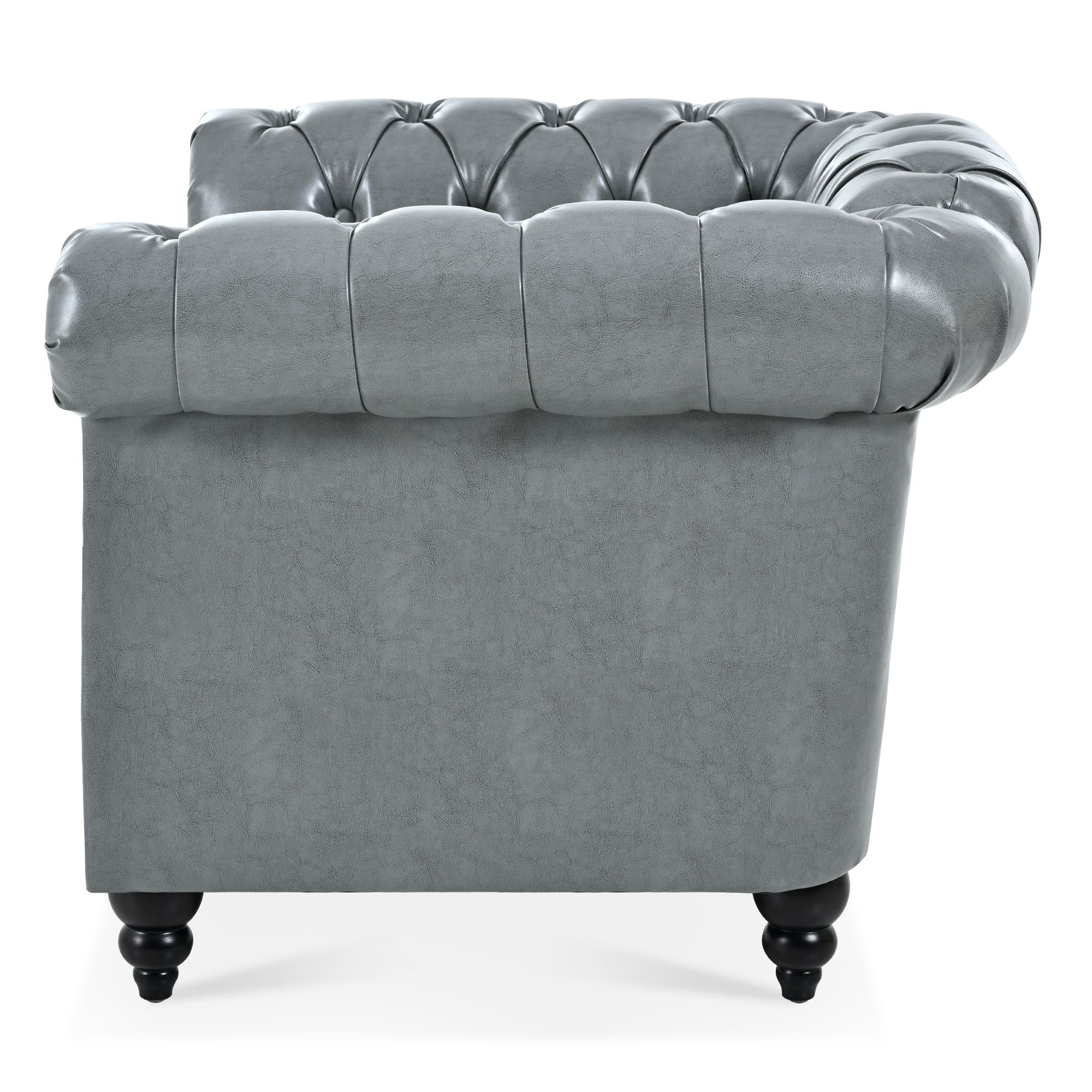 2.Soft PU leather fabric can be easily cleaned with clean wet cloth. The deep-point pull buttons are well arranged, the backrest is evenly stressed, the silver bubble nails are neatly trimmed to make the sofa more delicate, the smooth curled armrest design is more unique and fashionable, and the overall soft curve more reflects the master's bearing and taste.