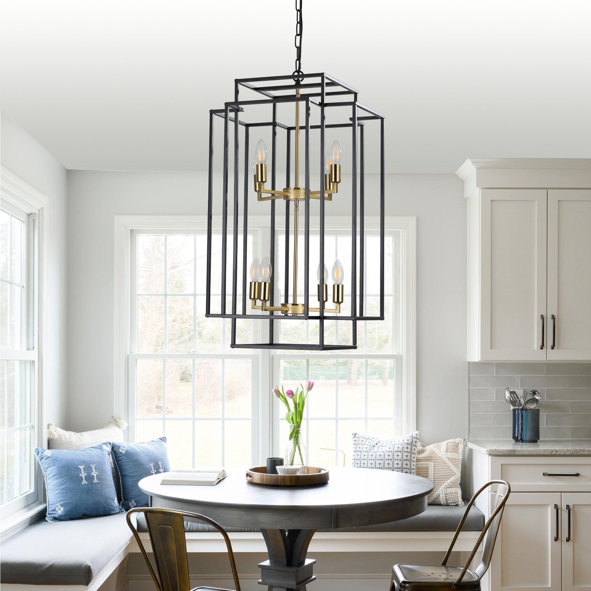 18" Modern 8-Light Black Gold Geometric Pendant Chandelier, Industrial Metal FramePerfect Design Style: This foyer chandelier has a black geometric frame and a gold central lamp base. It is the perfect complement to the lamps in your home. This kitchen island chandelier is the perfect choice for you! More and more customers are picking this fixture for better comfort and to meet the new popular styles. It is suitable for all decoration styles. this foyer chandeliers for high ceilings No assembly required.Adjustable Boom & Multi-Scene Applications: The foyer lighting fixtures length of the boom is 60 inches/150 cm. Consists of removable metal rods that allow you to easily adjust the height. foyer chandelier for: living room, room, Hallway, dining room, kitchen island, farmhouse, foyer.