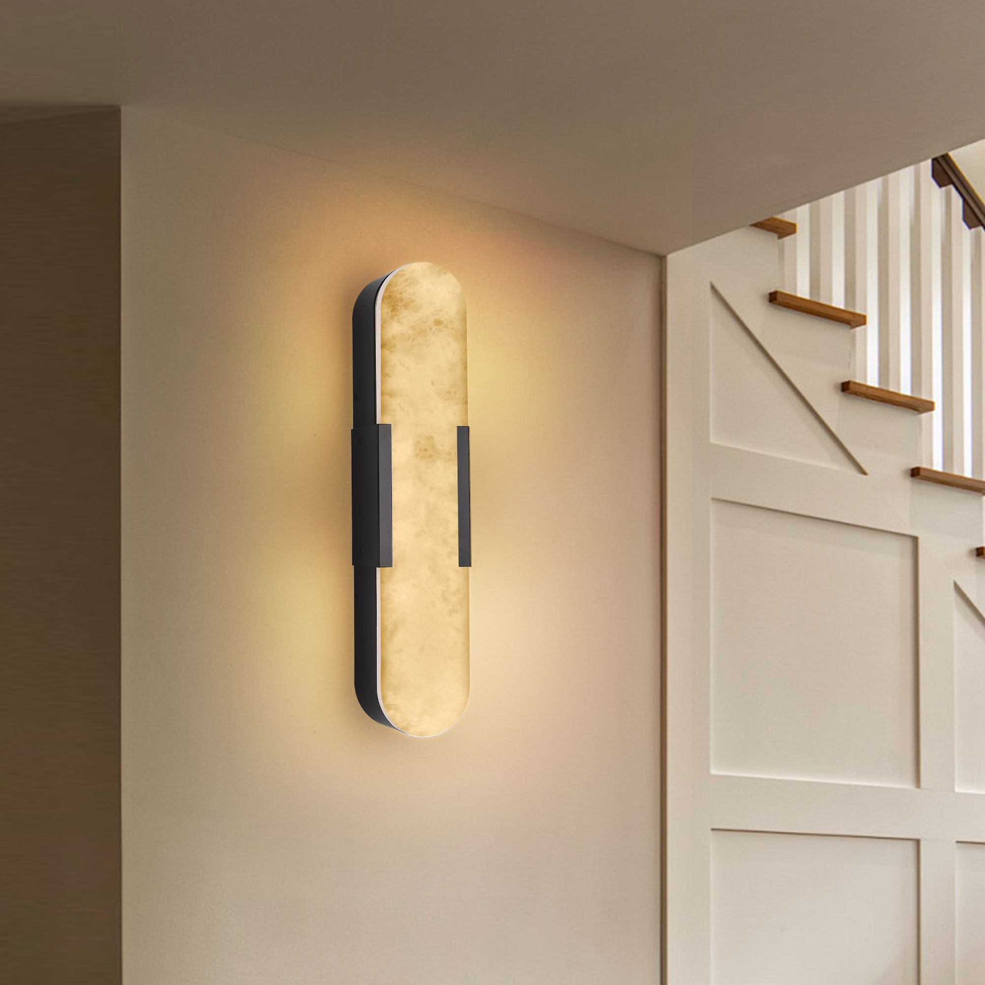 3.[Superior Material]Modern wall sconce features an oval design, carefully selected from beautiful alabaster stone & hard iron, hand-polished and crafted to be sturdy & durable. Beautiful black sconces set of 2 are suitable for any of your modern, minimalist, vintage or luxurious style.