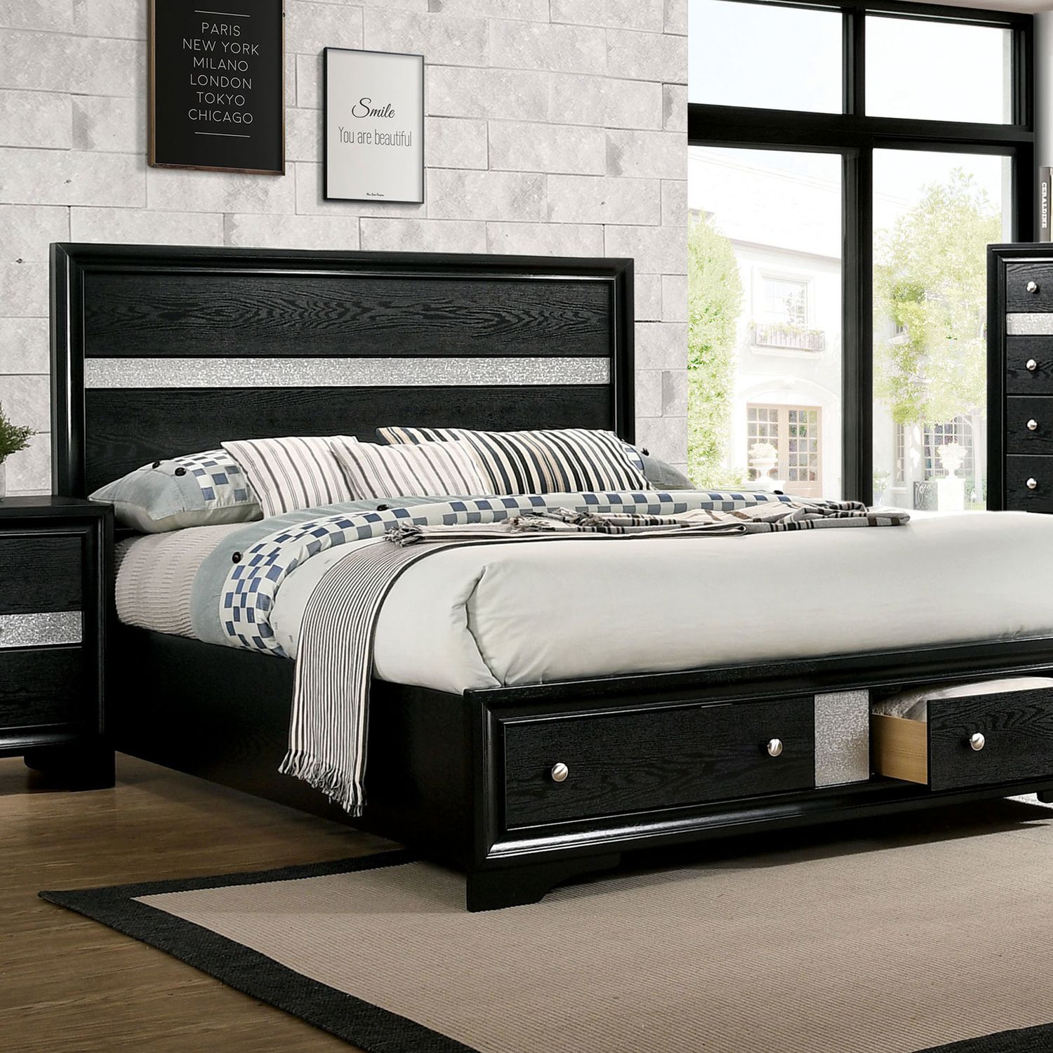 Home > 1pc Contemporary Queen Size Bed Black Solidwood 1pc Bed Bedroom Furniture Storage FB