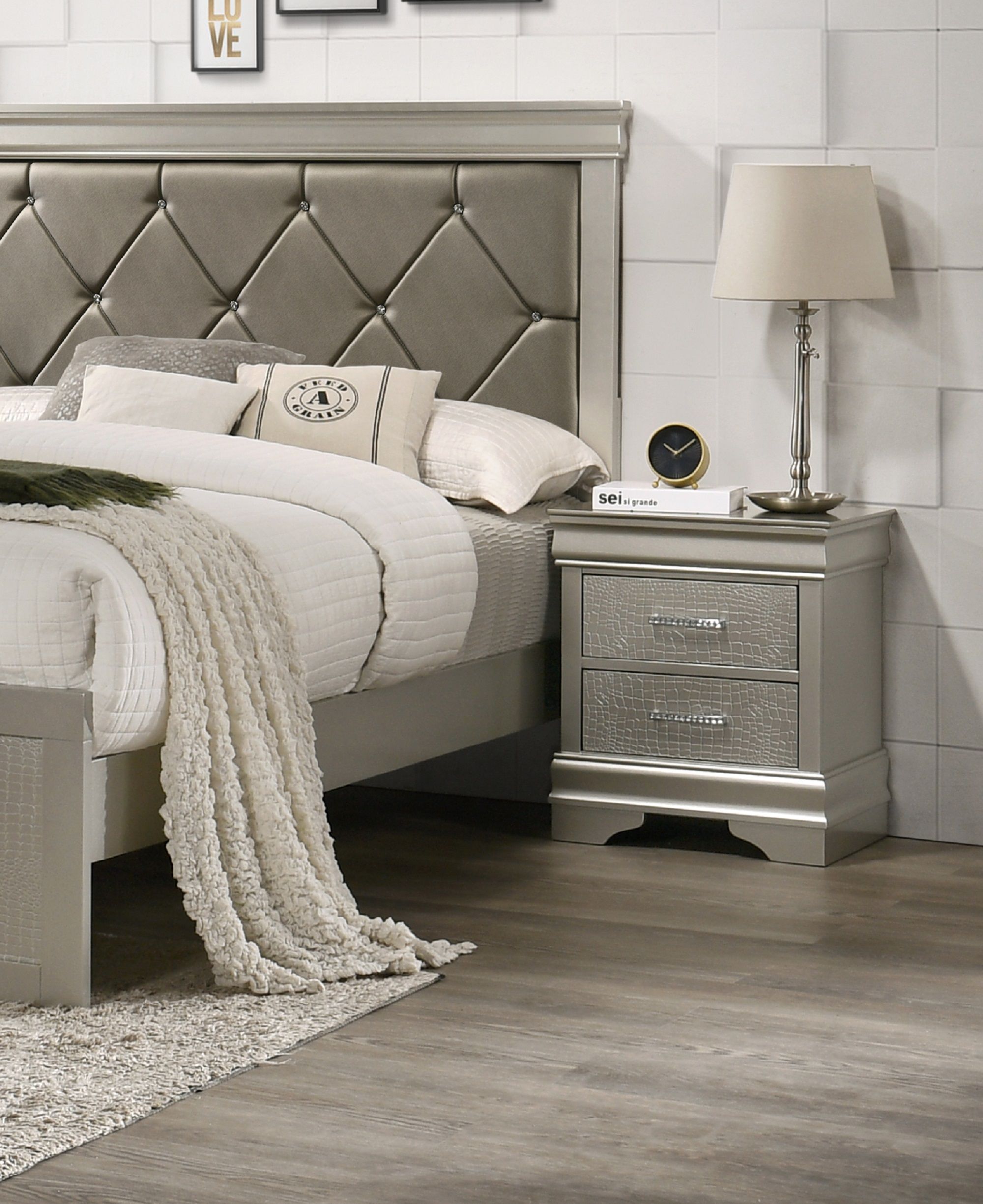 1pc Modern Glam Style Two Drawers Nightstand Champagne Finish Solid Wood Crystal-Like Diamond Tufted Crocodile Texture Bedroom Furniture 1pc Modern Glam Style Two Drawers Nightstand Champagne Finish Solid Wood Crystal-Like Diamond Tufted Crocodile Texture Bedroom Furniture 1pc Modern Glam Style Two Drawers Nightstand Champagne Finish Solid Wood Crystal-Like Diamond Tufted Crocodile Texture Bedroom Furniture