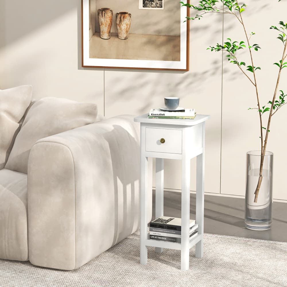 ● Extra Storage Space: Say goodbye to storage concerns! The spacious tabletop provides room for your cup of coffee or a lamp. The drawer not only adds a touch of elegance but also offers discreet storage for small items. Additionally, the open shelf is perfect for showcasing books or magazines, thus keeping everything you need within easy.