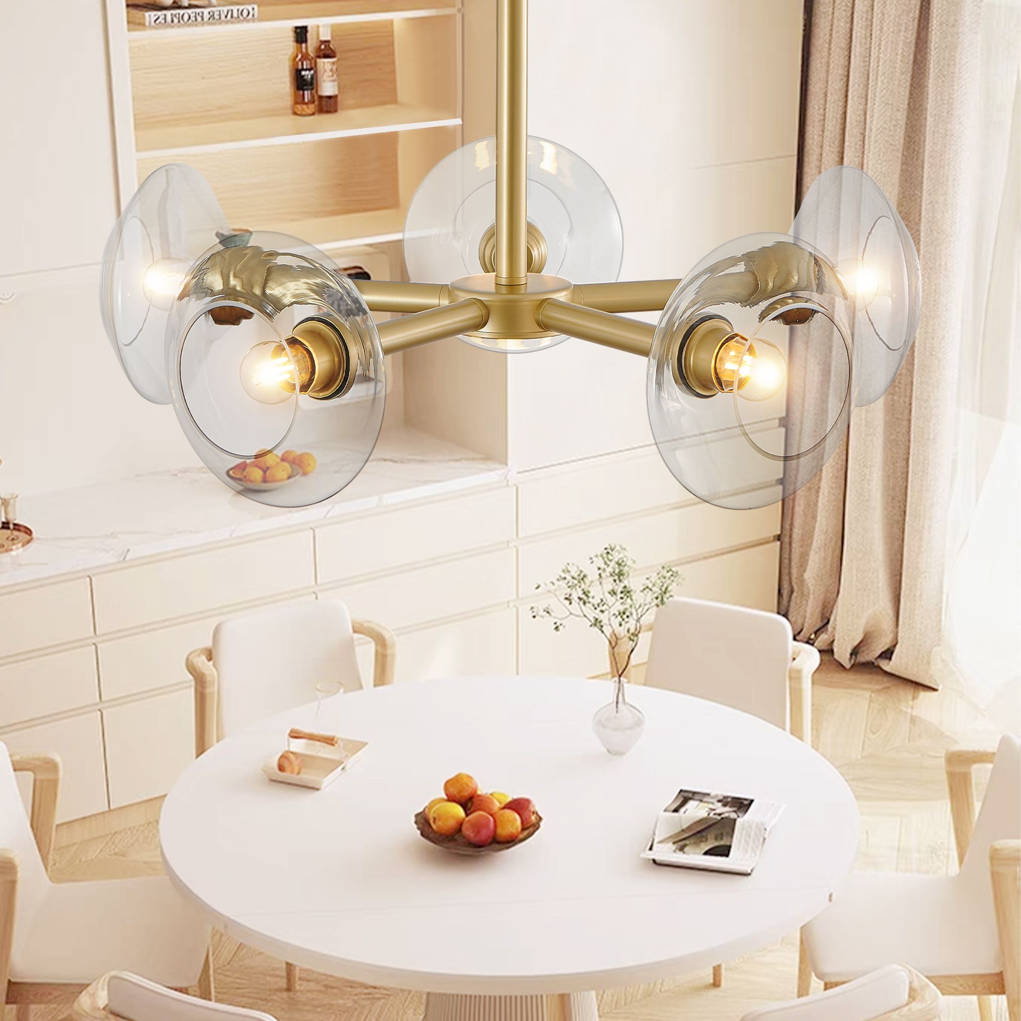 26" Modern Gold 5-Light Sputnik Chandelier with Clear Glass Shades, Mid-Century Hanging Pendant Light Fixture for Dining Room, Living Room 26" Modern Gold 5-Light Sputnik Chandelier with Clear Glass Shades, Mid-Century Hanging Pendant Light Fixture for Dining Room, Living Room 26" Modern Gold 5-Light Sputnik Chandelier with Clear Glass Shades, Mid-Century Hanging Pendant Light Fixture for Dining Room, Living Room
