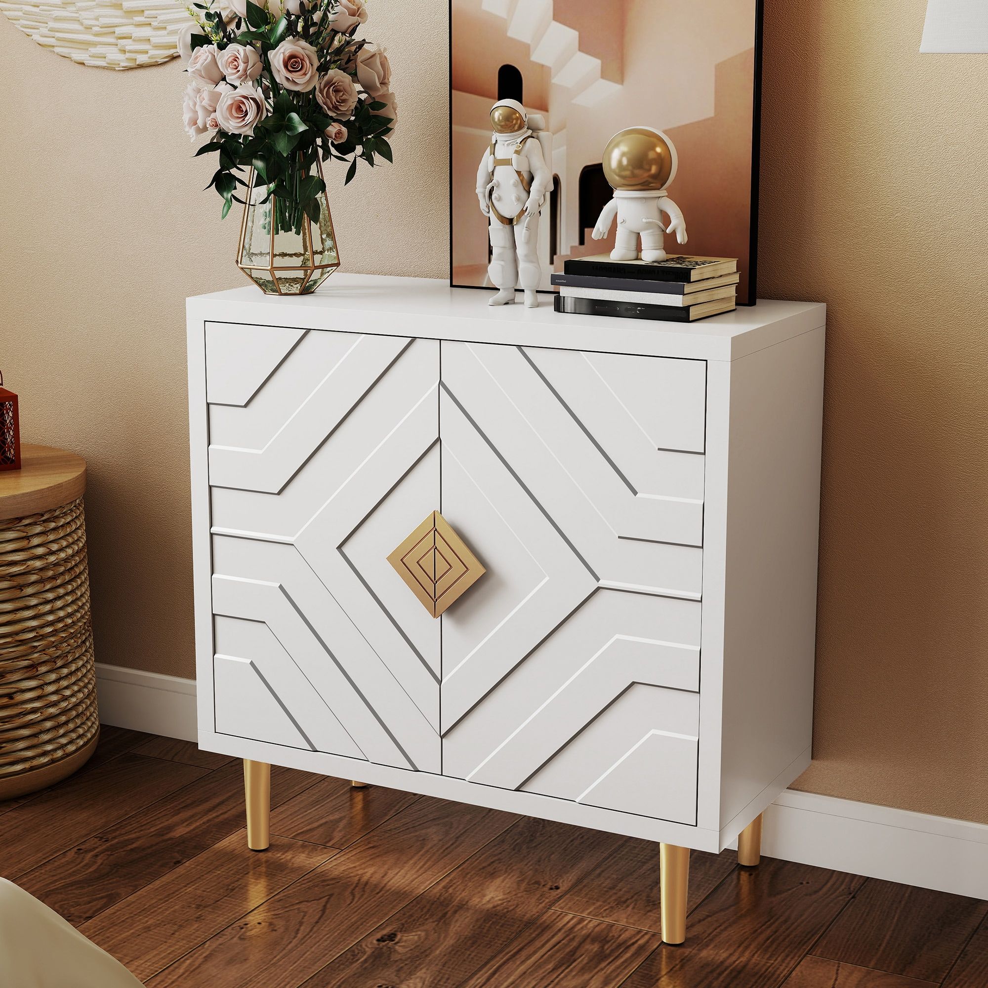 2-Door Accent Cabinet with Embossed Doors, Storage Sideboard & Buffet for Living Room, Kitchen, Dining Room, Entryway