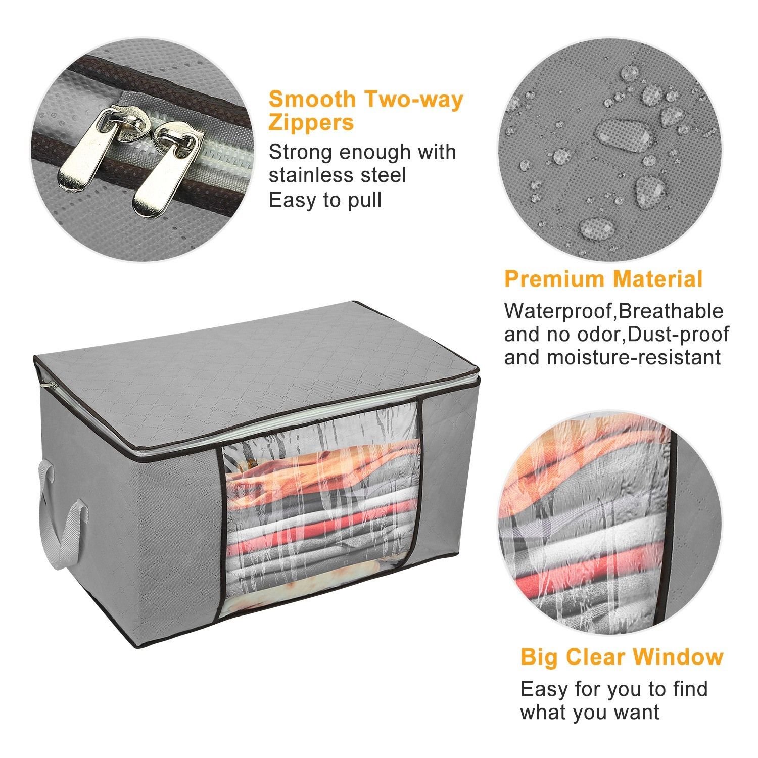 **Dust-Proof and Moisture-Resistant with Premium Material*:Our storage bags are specially made with the highest quality; three-ply composite; non-woven fabric to ensure more durability and a sturdy form; as well as to promotes ventilation and protects your stored articles from moisture and dust. You don't need to worry about your comforter or clothes getting mildew.