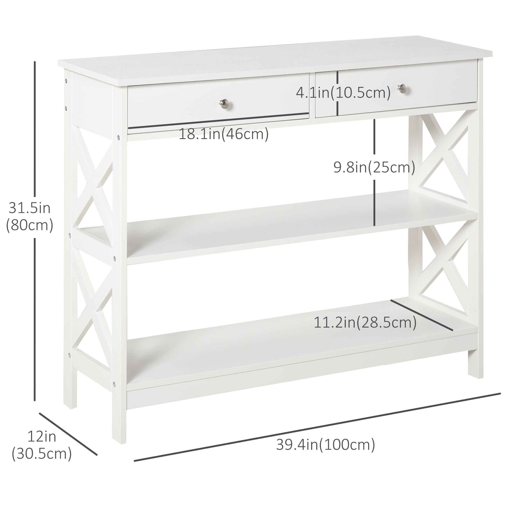 39" Console Table, Narrow Entryway Table with Storage Shelves, Drawers and X Frame for Behind Couch, Living Room, Hallway, White