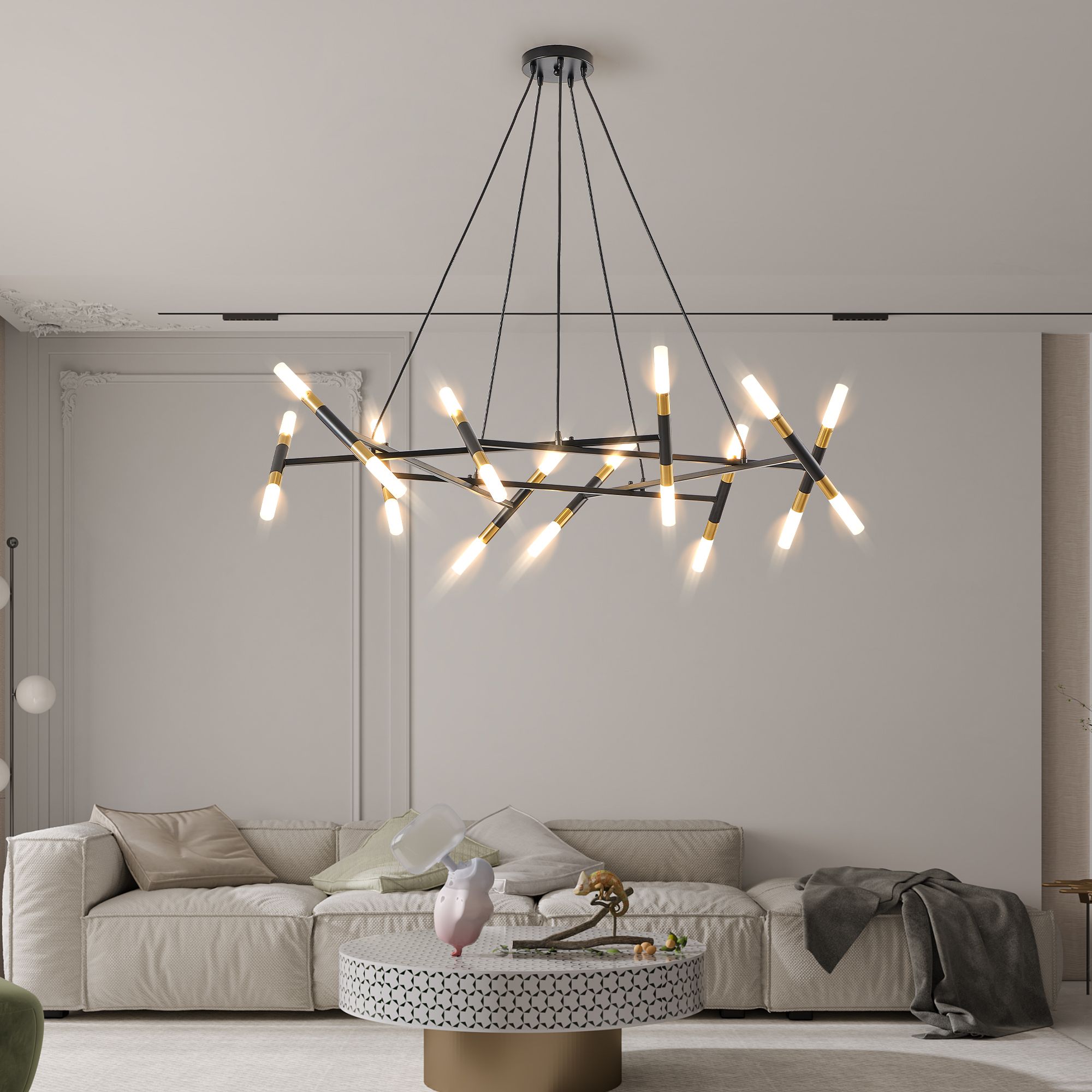 1.Modern minimalist design:The combination of branched design and matte gold showcases a high-end and atmospheric modern artistic sense, suitable for decorating various indoor spaces such as dining rooms, living rooms, or kitchen islands.