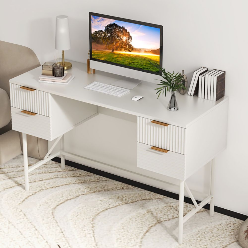 4.Multipurpose Working Spot: The pure white looking and drawers with rippled design endow understated elegance to the workstation, making it a good addition to home and office. In addition to be a writing desk, it can be served as a computer desk, study desk, makeup table as well.