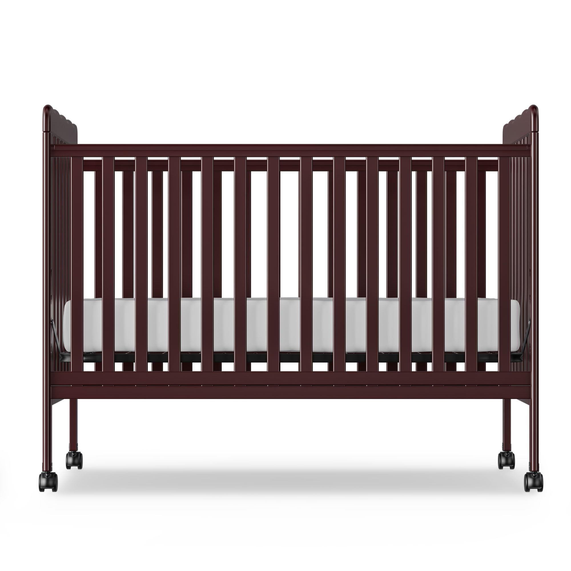 Three adjustable mattress height positions adapt to your baby’s growth: the highest setting lets you easily lift a newborn without straining, the middle position secures a sitting baby from climbing out, and the lowest setting suits active toddlers as they transition to independent sleep.