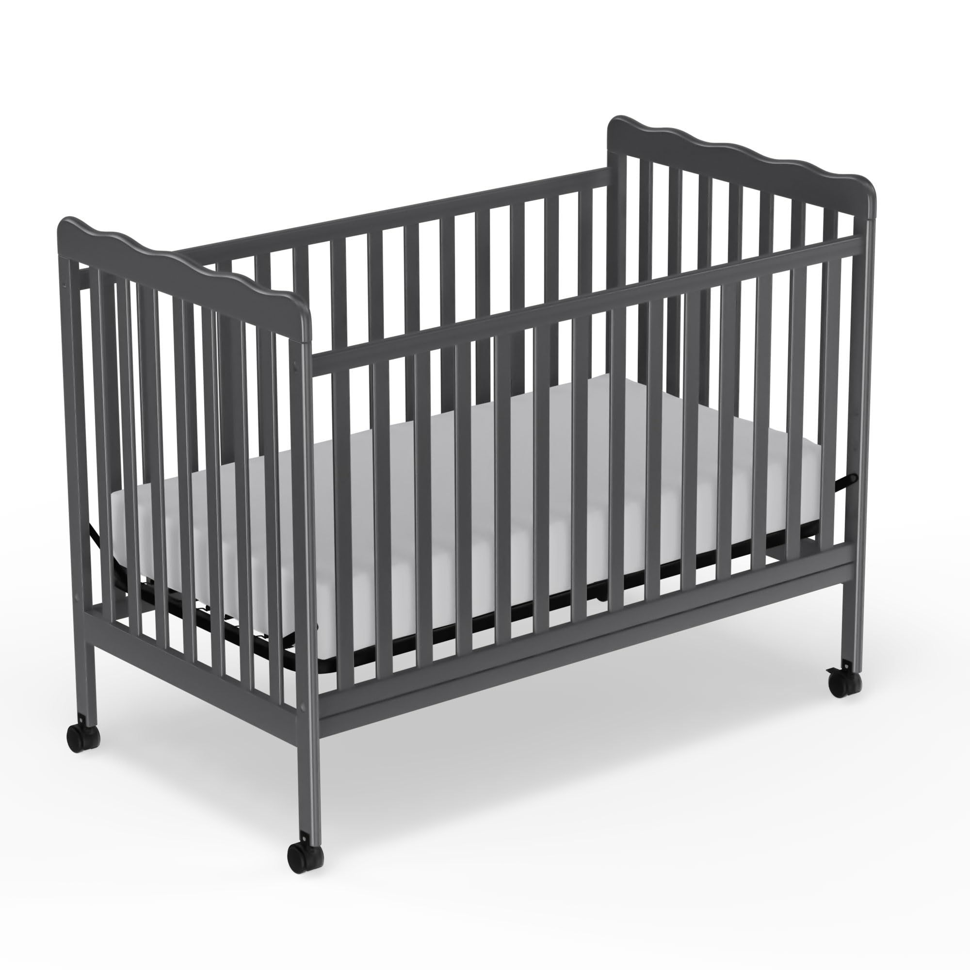 Three adjustable mattress height positions adapt to your baby’s growth: the highest setting lets you easily lift a newborn without straining, the middle position secures a sitting baby from climbing out, and the lowest setting suits active toddlers as they transition to independent sleep.