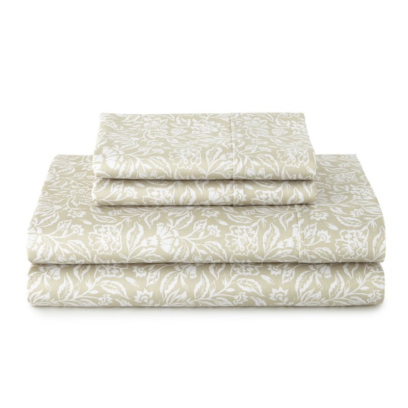 Home > 4-Piece 300 Thread Count Sateen King Sheet Set, Floral Almond Biscuit