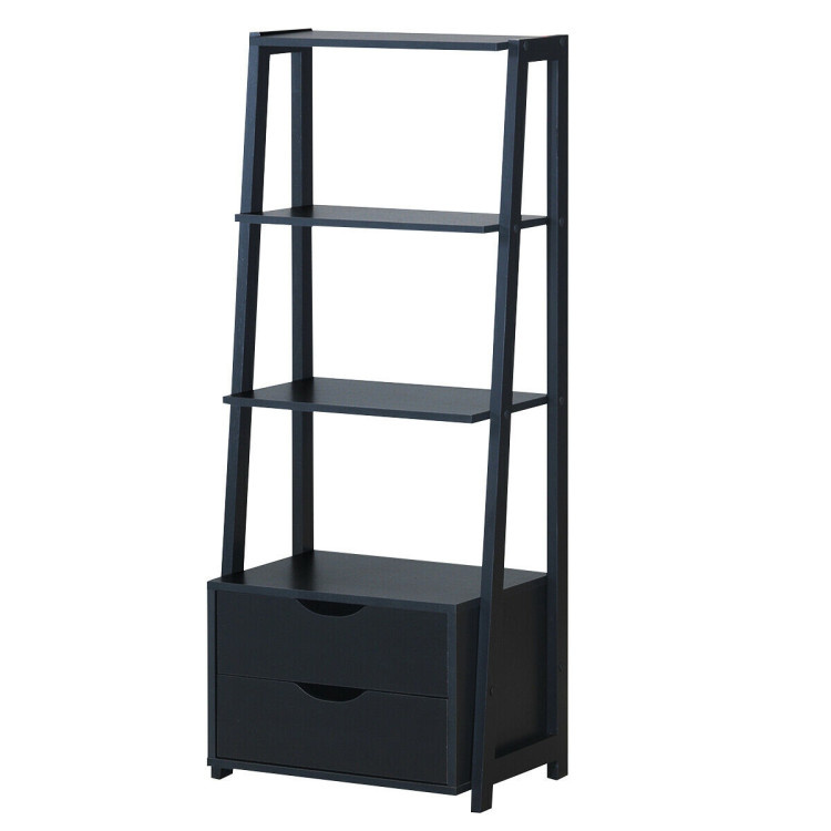 4-Tier Ladder Bookshelf Storage Display with 2 Drawers