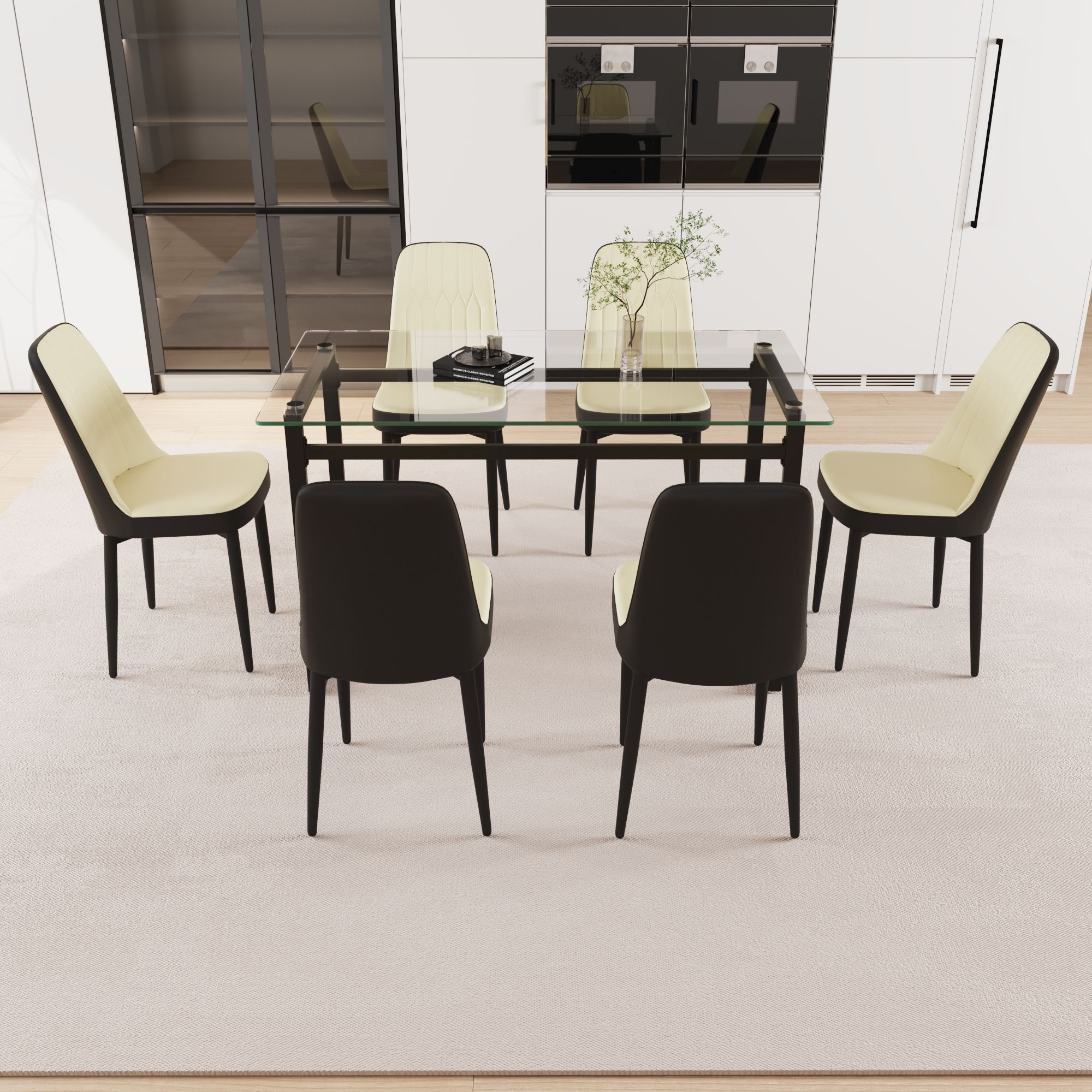 51" 6 person glass dining table set, kitchen set with black metal leg dining table and chairs 51" 6 person glass dining table set, kitchen set with black metal leg dining table and chairs 51" 6 person glass dining table set, kitchen set with black metal leg dining table and chairs
