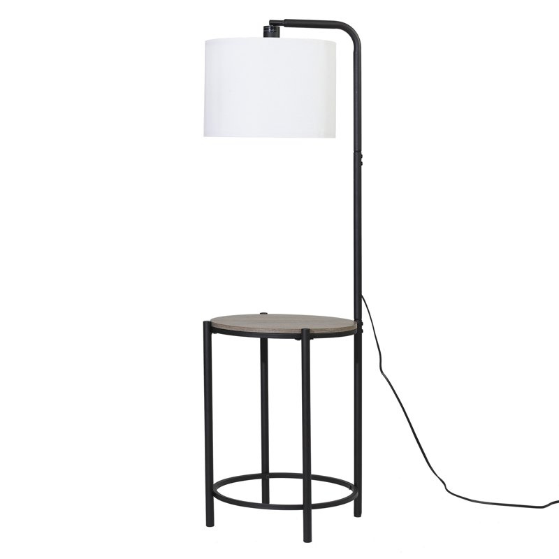 The 54-Inch Floor Lamp, with MDF Table creates a fun mid-century modern feel while also being functional. This matte black sturdy metal floor lamp stands 54 inches tall and includes a white shade and a faux wood finished shelf. A 5-foot cord makes it easy to place this lamp anywhere in the room. The durable faux wood finish table is 22 inches high, the ideal height for placement next to an armchair or couch. The lamp includes a white lamp shade that measures 14 inches in diameter and 10 inches high and an energy-efficient 5-watt LED bulb to provide a nice soft glow, perfect for reading a good book. A rotary switch makes it easy to turn the lamp on and off. The 54-Inch Floor Lamp, with MDF Table, is the perfect floor lamp to upgrade the look of any room in your house.* The lamp has a matte black finish with a faux wood tabletop that gives off a mid-century modern vibe* Includes 1 white lampshade* Includes 1 5-watt LED bulb* Rotary switch for turning the lamp on and off* 60-inch lead wire* Ideal for indoor use only* The lamp stands 54-inches tall* The built-in table is 71.5-inch in diameter and is 22-inches high* Lamp Shade: 14-Inch Diameter x 10-Inch Height* Assembly required* Model No.: 62-095