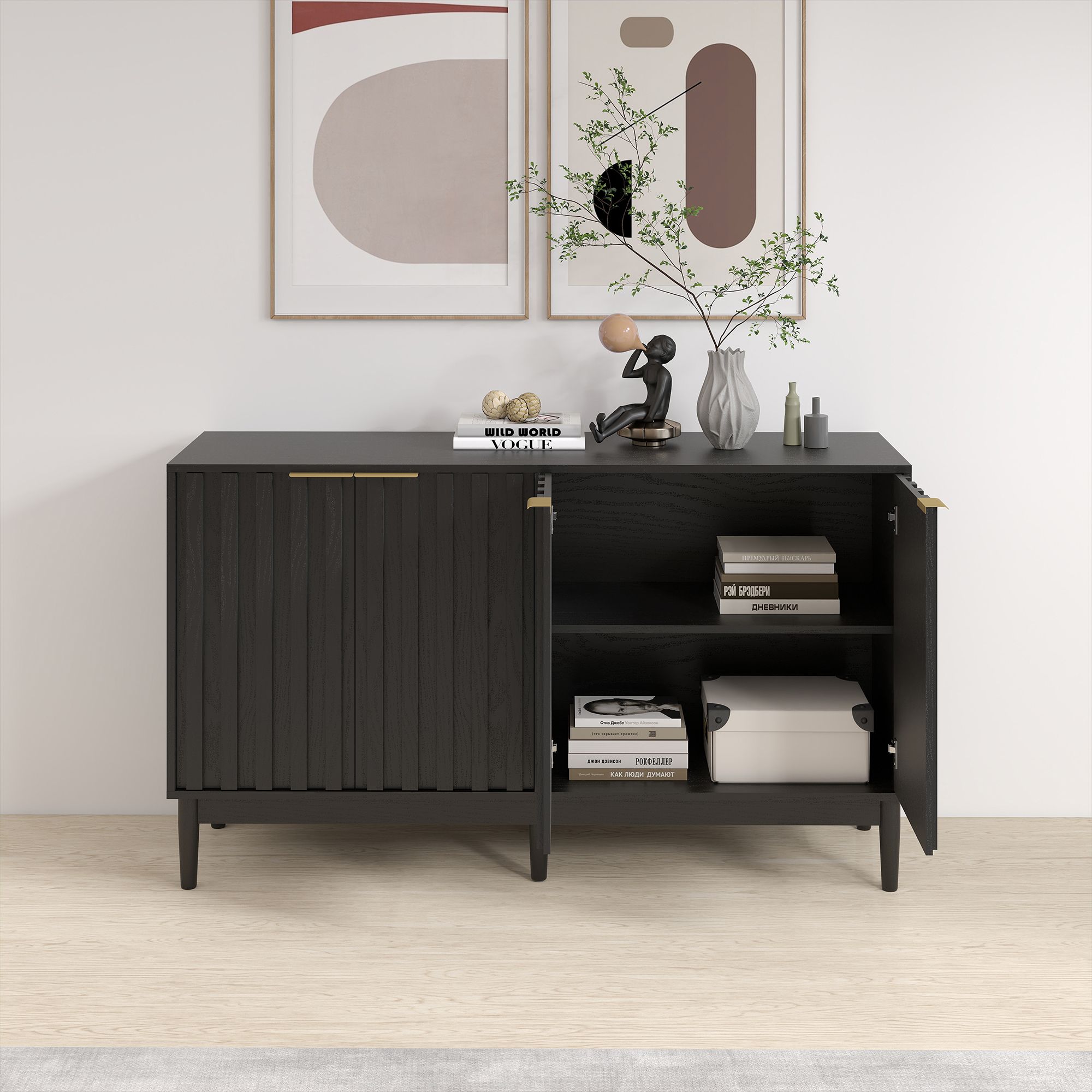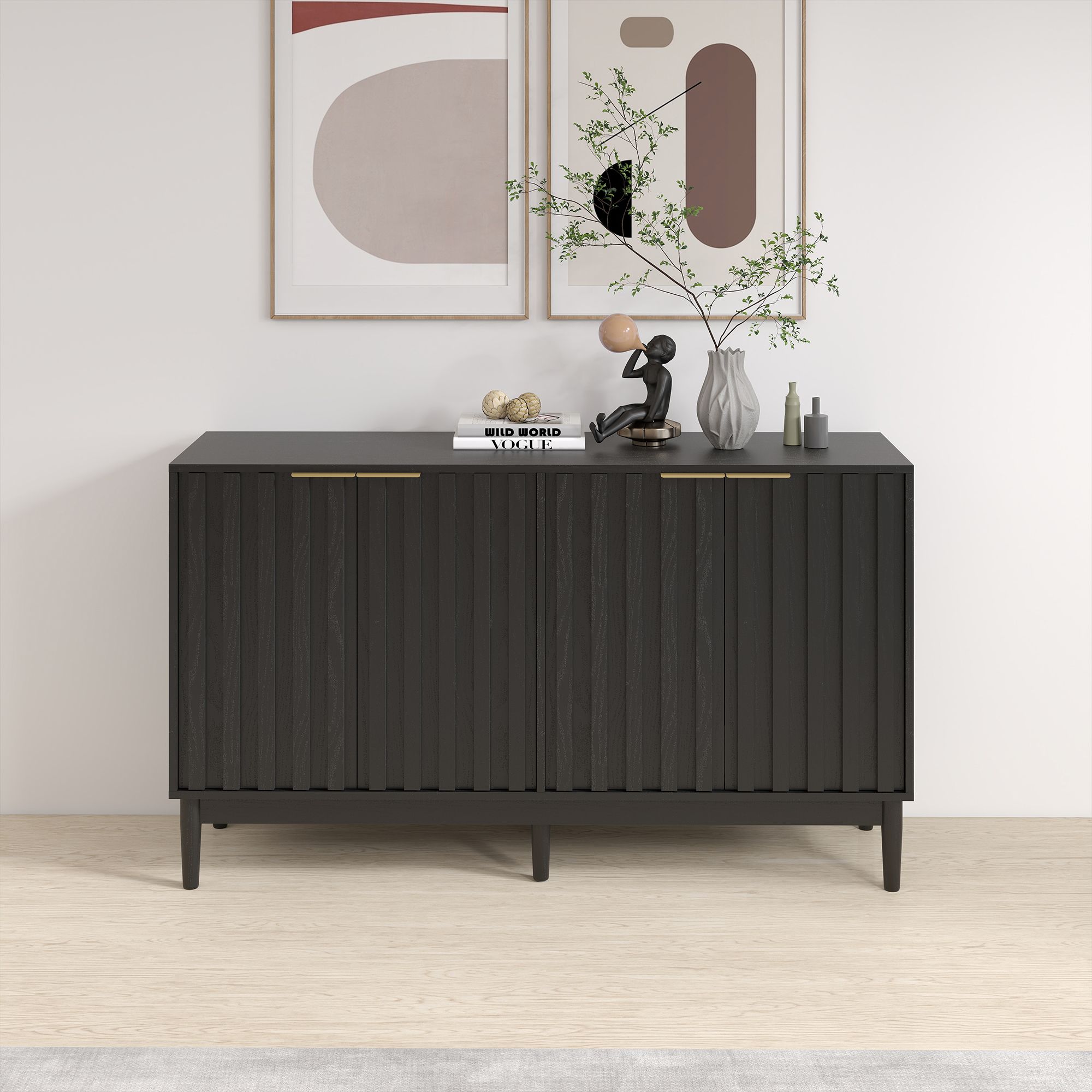 55' Buffet Cabinet Sideborad with 4 Door, Fluted Cabinets with Storage, Kitchen Side Board Storage Cabinet with Adiustable Shelves for Living Room 55' Buffet Cabinet Sideborad with 4 Door, Fluted Cabinets with Storage, Kitchen Side Board Storage Cabinet with Adiustable Shelves for Living Room 55' Buffet Cabinet Sideborad with 4 Door, Fluted Cabinets with Storage, Kitchen Side Board Storage Cabinet with Adiustable Shelves for Living Room