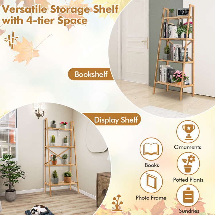 58 Inch 4-Tier Bamboo Ladder Bookshelf 58 Inch 4-Tier Bamboo Ladder Bookshelf 58 Inch 4-Tier Bamboo Ladder Bookshelf