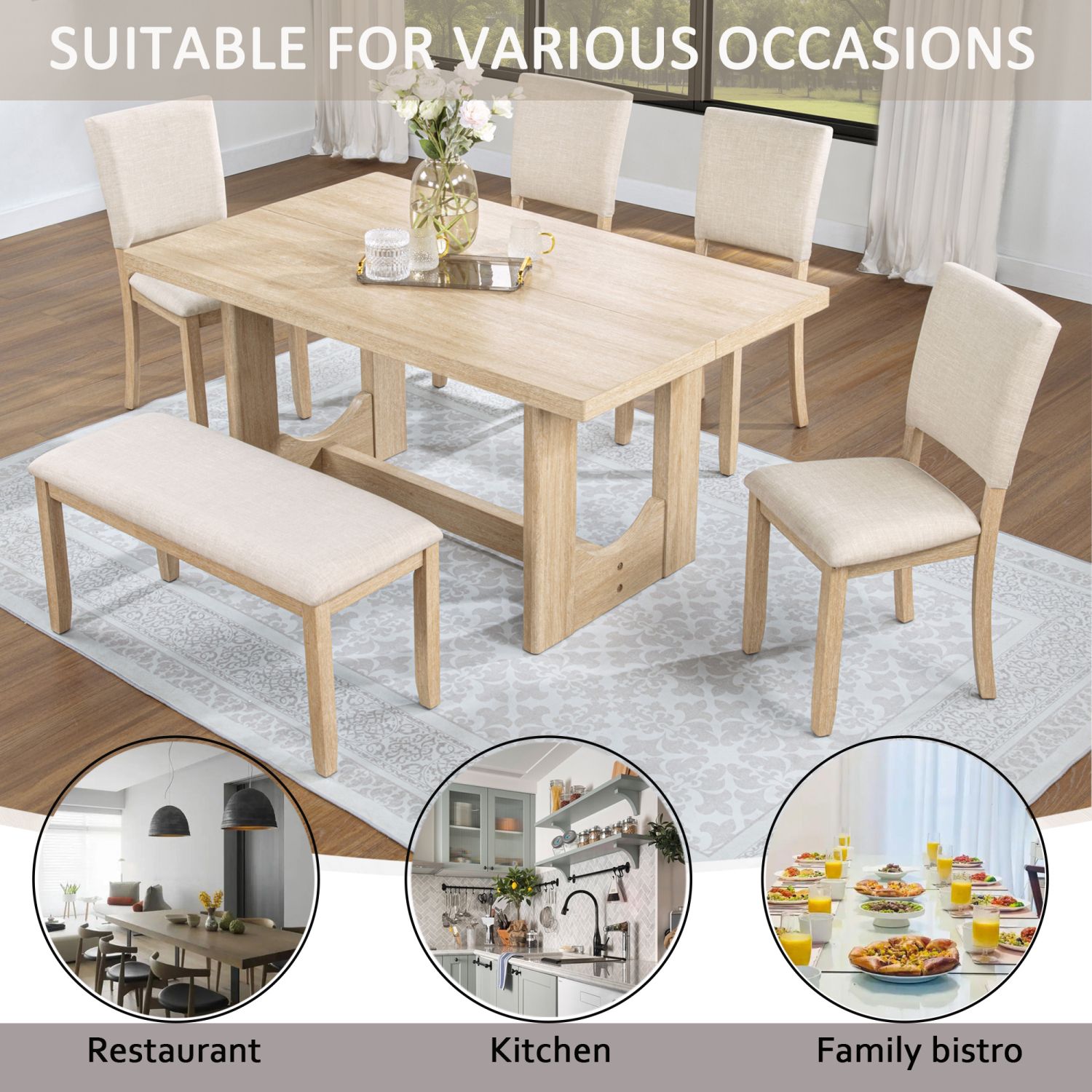 6 Piece Dining Table Set with Bench, Wooden Rectangular Kitchen Table Set with Bench and 4 Upholstered Chairs for Living Room, Kitchen, Dining Room 6 Piece Dining Table Set with Bench, Wooden Rectangular Kitchen Table Set with Bench and 4 Upholstered Chairs for Living Room, Kitchen, Dining Room 6 Piece Dining Table Set with Bench, Wooden Rectangular Kitchen Table Set with Bench and 4 Upholstered Chairs for Living Room, Kitchen, Dining Room