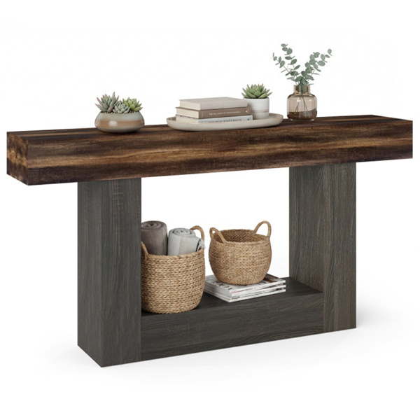 • Rustic Industrial Aesthetic: The foyer table showcases a rustic wood finish that beautifully blends rustic warmth with industrial durability for a timeless, versatile look. Its smooth surface ensures effortless cleaning and maintenance, keeping the table looking attractive for years to come.