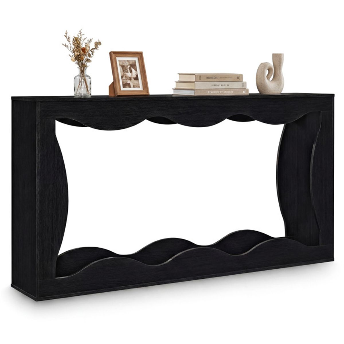 • Artistic Wavy Silhouette: The entryway table features an eye-catching center hollow-out with elegantly curved wavy edges that create a dynamic focal point in any room. It adds visual flow and sophisticated charm while serving as a stunning conversation starter for your entrance.