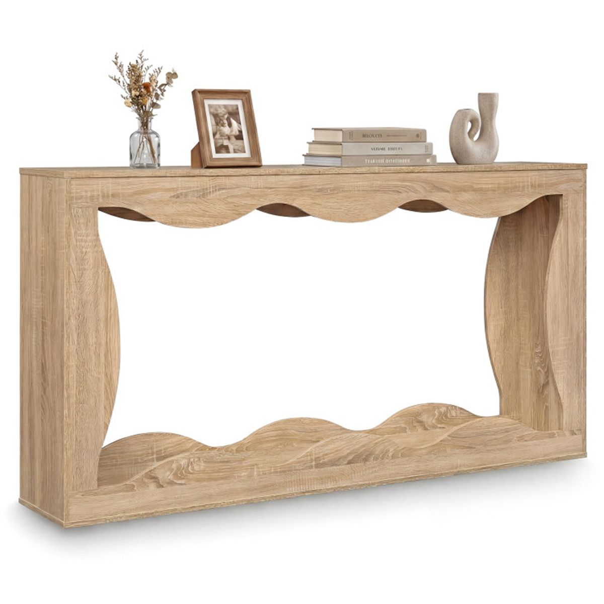 63" Narrow Console Table with Wavy Hollow Design, 2-Tier Extra Long Entryway Table with Storage Shelf - Natural 63" Narrow Console Table with Wavy Hollow Design, 2-Tier Extra Long Entryway Table with Storage Shelf - Natural 63" Narrow Console Table with Wavy Hollow Design, 2-Tier Extra Long Entryway Table with Storage Shelf - Natural
