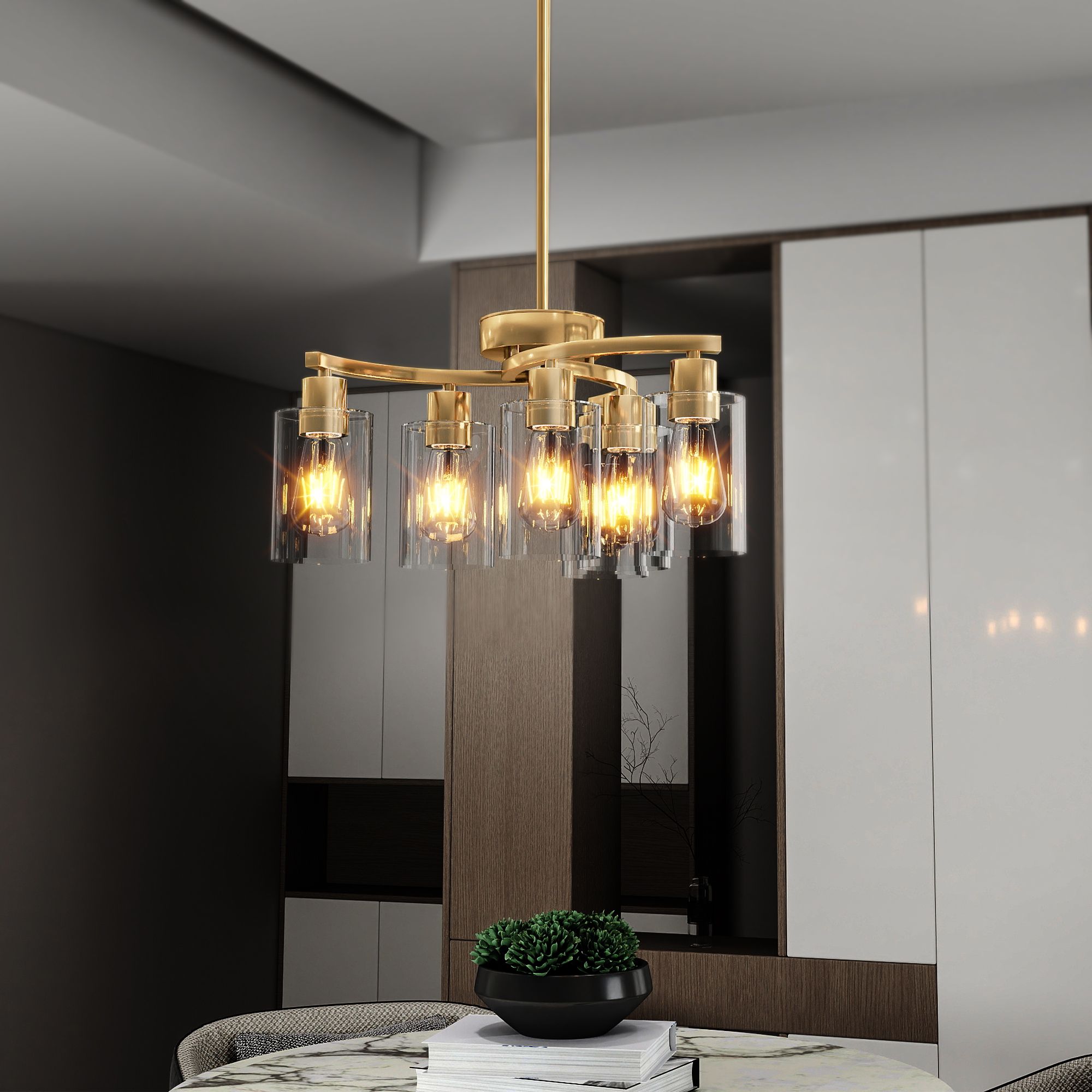 6-Light Gold Chandeliers for Dining Room, Modern Kitchen Island Light Fixtures Over Table