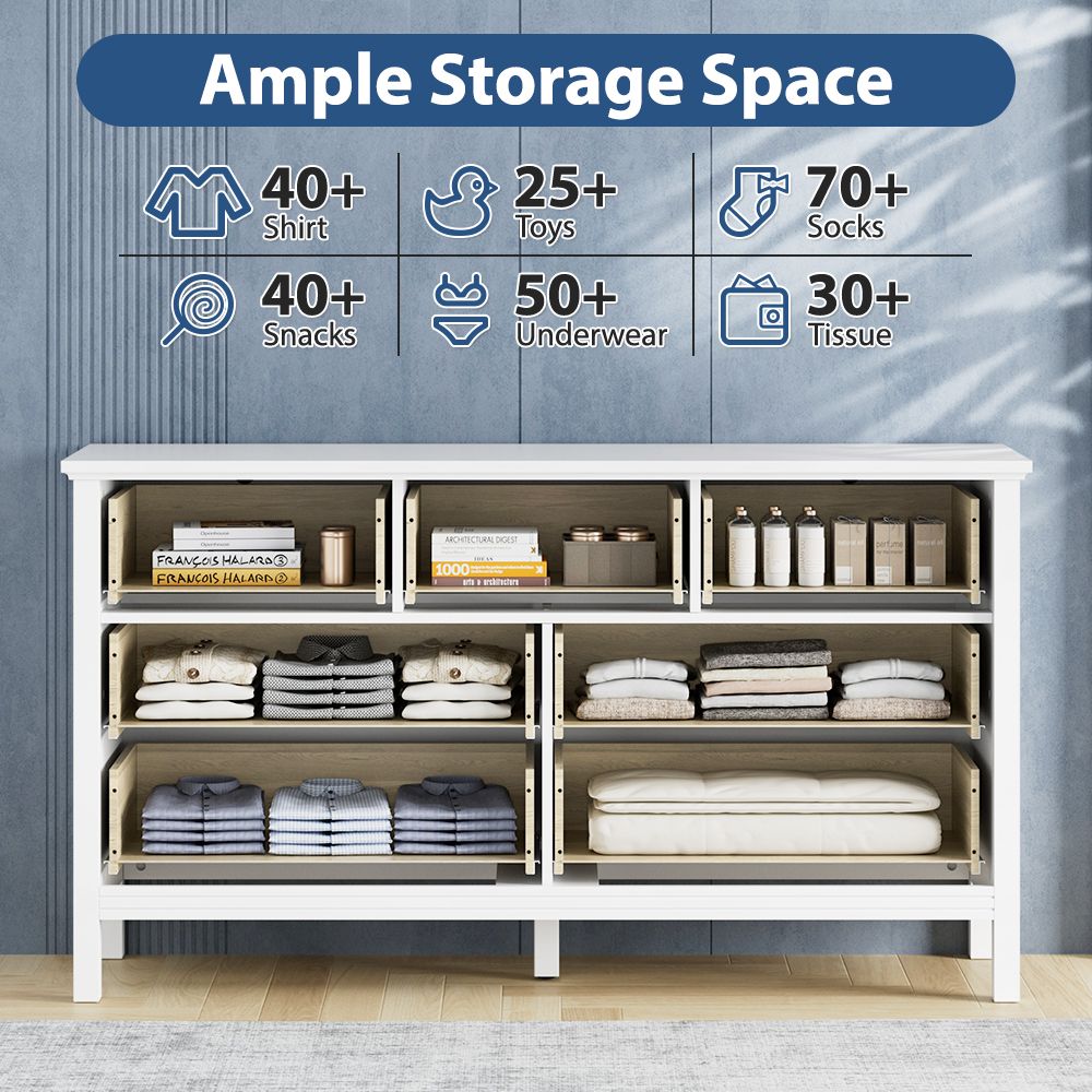 [Sturdy Construction]The 7 drawer dresser is made of premium wood ensuring stability and durability. This chest of drawers for bedroom is also moisture-resistant and scratch-resistant. It comes equipped with long-lasting drawer slides for years of reliable use.