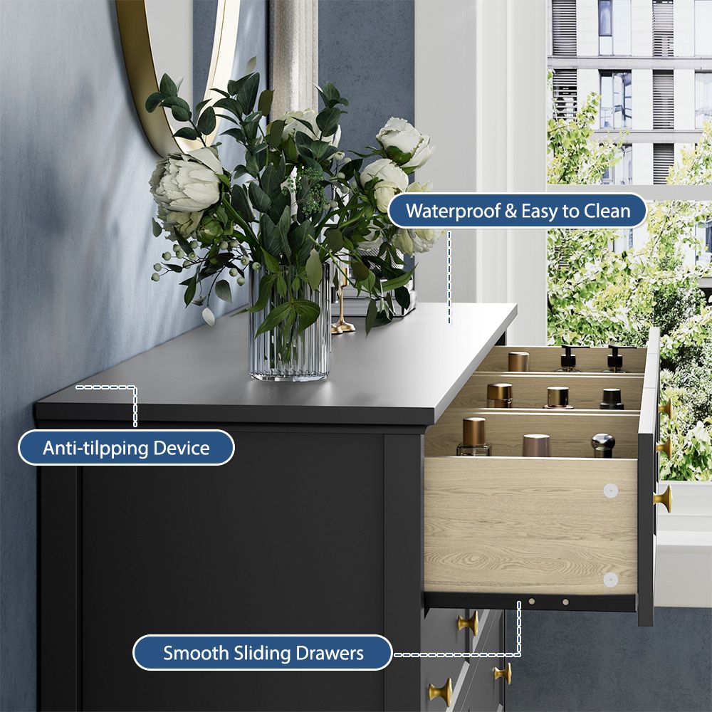 [Sturdy Construction]The 7 drawer dresser is made of premium wood ensuring stability and durability. This chest of drawers for bedroom is also moisture-resistant and scratch-resistant. It comes equipped with long-lasting drawer slides for years of reliable use.
