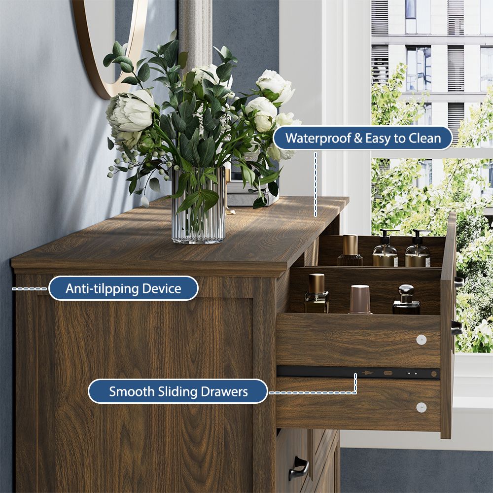The top of the dresser is waterproof. Spilled water or beverages can be easily wiped off with a damp cloth.
