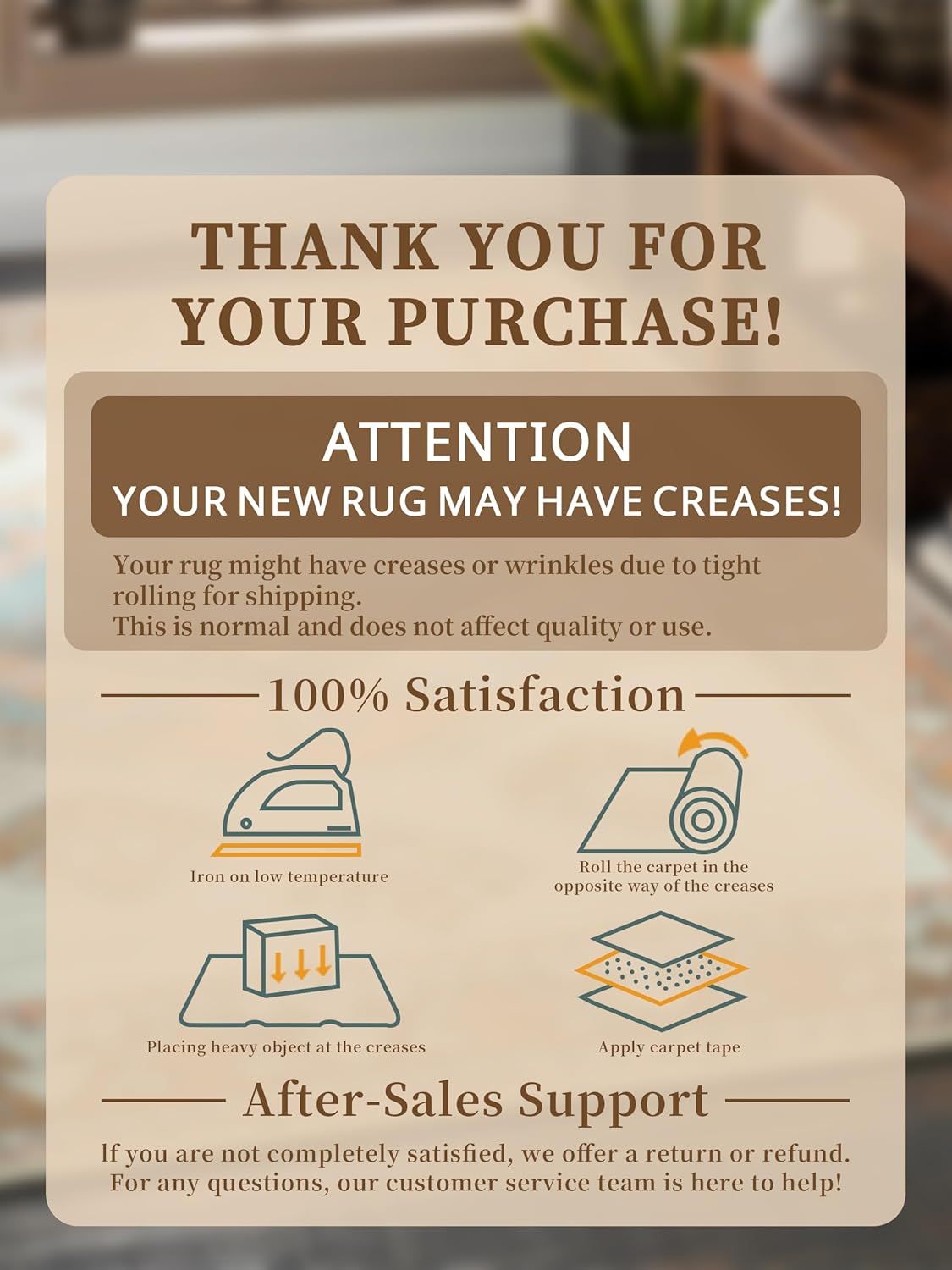 ABOUT THICKNESS & CREASES]Because this mat is folded and rolled for packaging, you may find it appears thin upon receipt. However, please don't worry; it will mostly flatten out after being unpacked and left for 5-7 days. You can also use a steam iron to help remove the creases more quickly. (Please refer to the video for detailed instructions.)