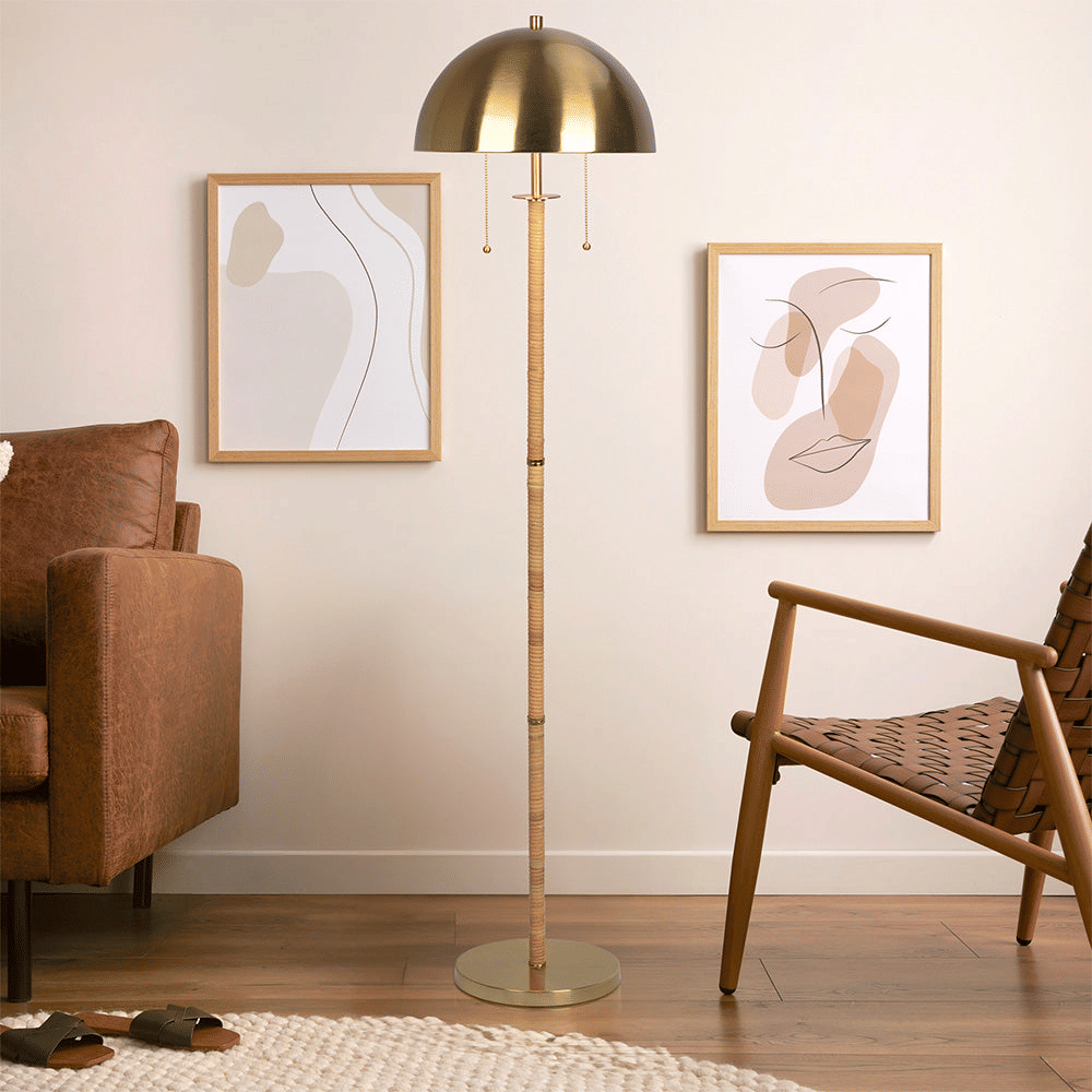 Home > Allure 2-Light Floor Lamp, Gold Brass, Natural Rattan Tube , Double On/Off Pull Chain