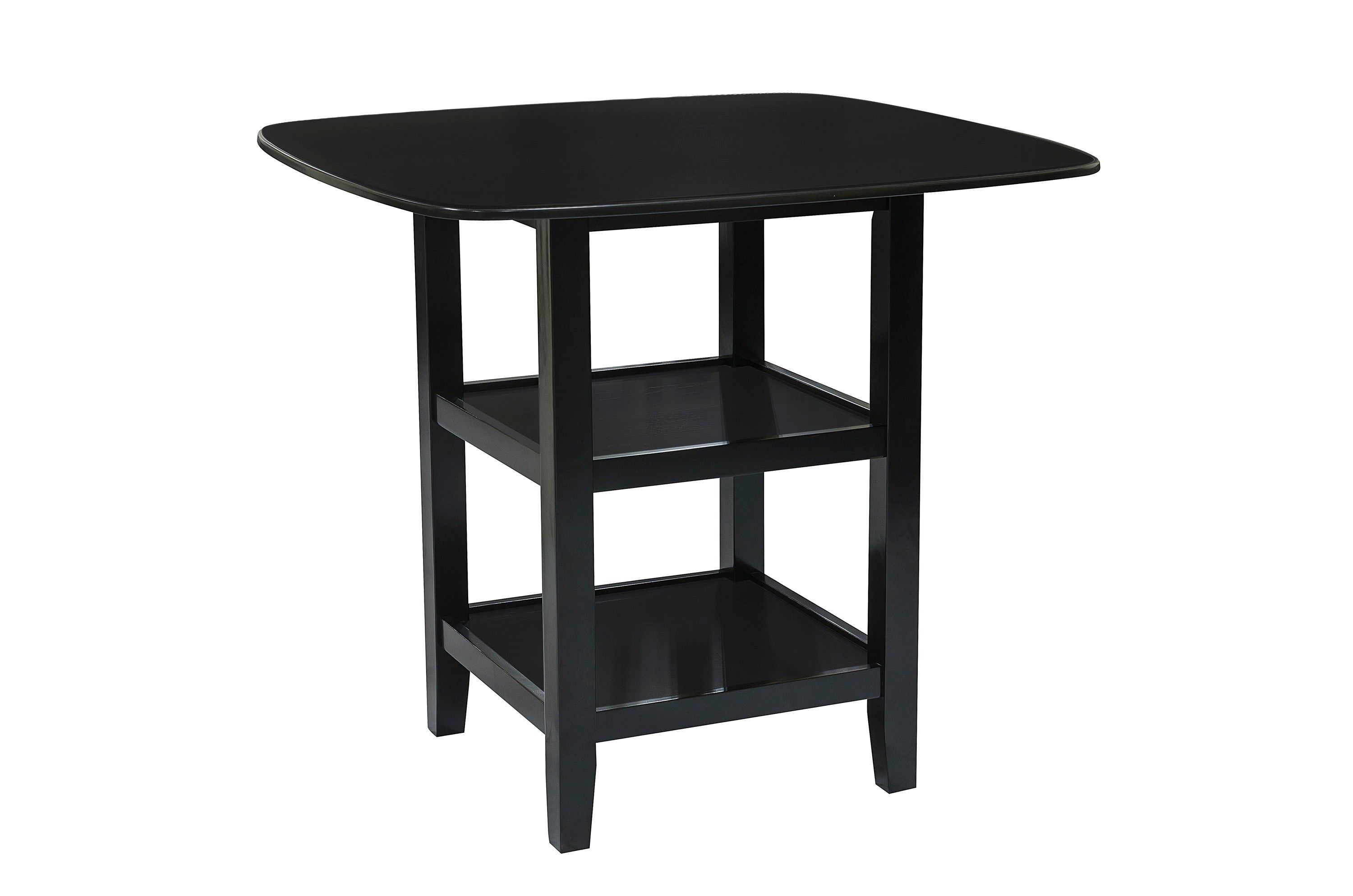 Perfectly scaled for a cozy dining area is the Norman Collection. The counter height table features double display shelves, providing ample storage and display space. Each chair, in this five-piece dining offering, has a double X-back design that lends a transitional feel. The black finish compliments the casual feel of this offering.PRODUCT DIMENSIONS: TABLE: 39" x 39" x 36.5"HApron to floor: 34.5"Shelf interior: 19" x 19" x 10"(1),19" x 19" x 13.5"(1)CHAIR: 18.5" x 20.5" x 40"HSeat Width: 18.5"Seat Depth: 16"Seat Height: 25.5"Listing Includes: 5pc Dining Set (1 Counter Height Table and 4x Counter Height Chairs) Only.Simple Assembly Require.