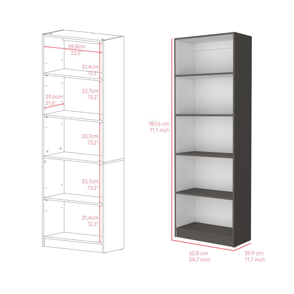 Experience a fusion of sophistication and function with the Benzoni 4-Shelves Bookcase. Spanning a generous storage capacity across its four tiers, precisely dimensioned at 12.3"H x 13.6"H x 16.5"W x 11.65"D, it is poised to house your diverse collection— from cherished literature to statement decor pieces. Every shelf reflects thoughtful design, ensuring your special items are organized and elegantly displayed. Crafted from the finest manufactured wood, with black, white, snow white or matt gray/white finishes.Dimensions:Height: 71,1" Width: 24,7'Depth: 11,7'Furniture Type: Ready to assemble (full assembly required).Certifications: CARB phase II compliant – TSCA Title VI Compliant.Warranty: 1-year warranty coverage in wooden parts- 1-year warranty coverage in hardware pieces since its manufacturing date found in the lot number printed in the product box.
