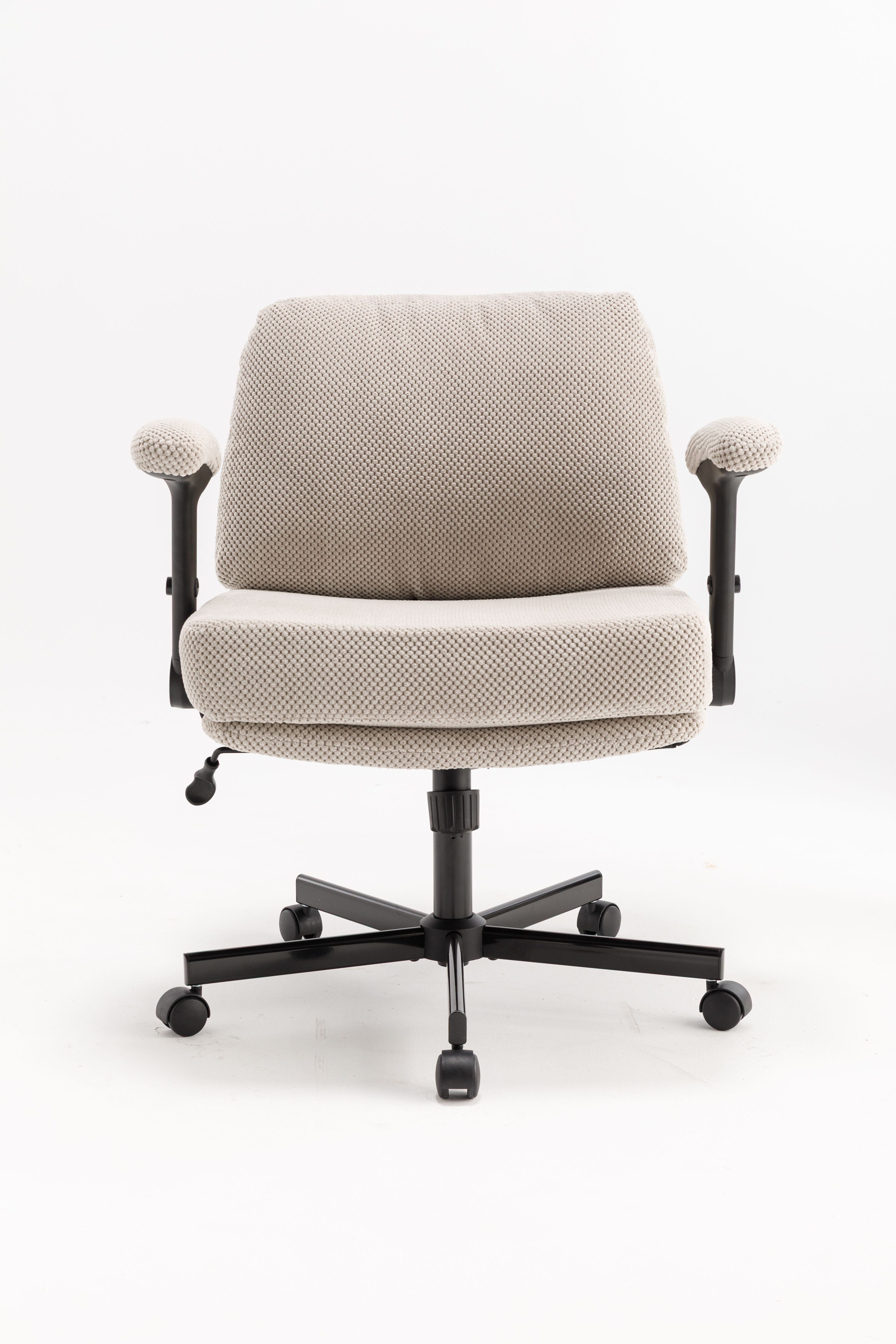 Comfy Texture Meets Modern Style: Wrapped in soft, skin-friendly grainy-textured fabric, this swivel desk chair brings a warm, inviting vibe to any room. The plush seat and backrest offer both comfort and style—making it a perfect addition to apartments, home offices, dorms, or any creative space that could use a cozy, modern upgrade. The criss cross chair with arms delivers the perfect mix of cloud-like comfort, supportive cushioning, and modern style