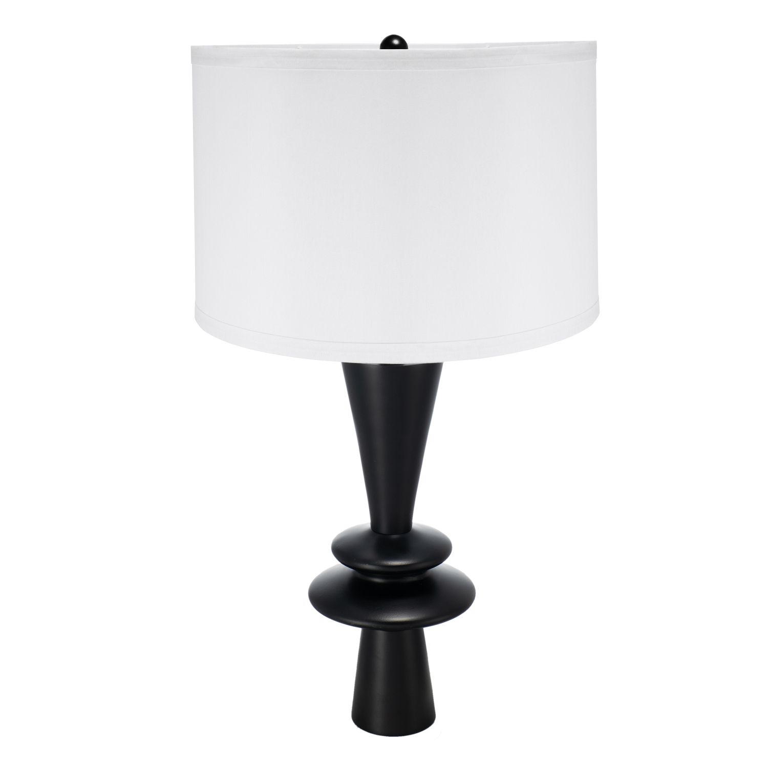 Home > D15x26.7" Black Aluminum Table Lamp with Two Varying Round Accents and White Drum Shade(Lamp Shade Assembly Required)