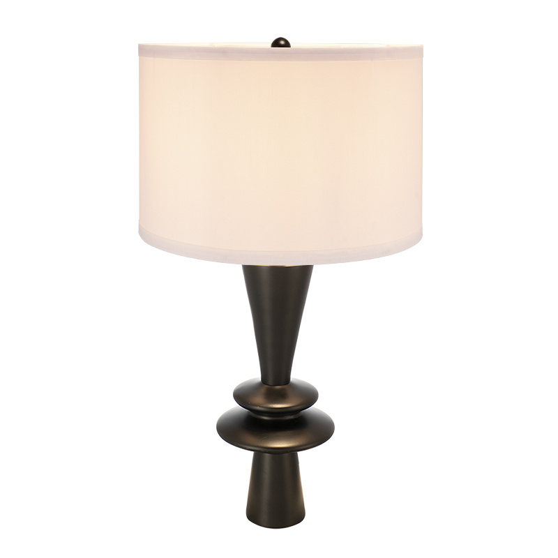Featuring an artistic silhouette with two discs in the center or of a unique body, a classic white fabric shade, and a sturdy aluminum construction with a sleek black finish, this table lamp offers both contemporary charm and intrigue in equal measure.