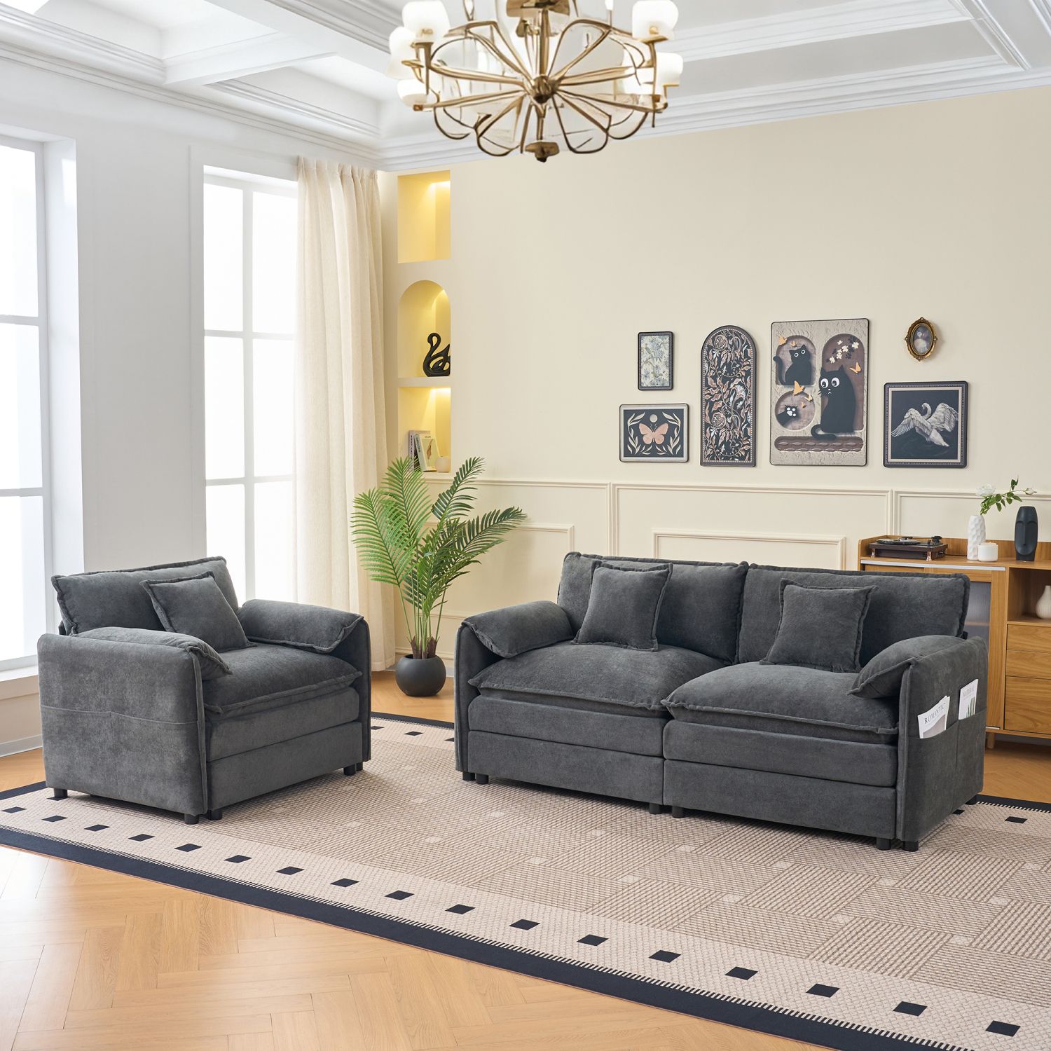 Ultimate Comfort & Softness – Upholstered in premium chenille fabric, this sofa is soft, breathable, and wrinkle-resistant. The dual-layer cushioned seats and high-resilience foam provide exceptional support and comfort, making every seating experience a delight.