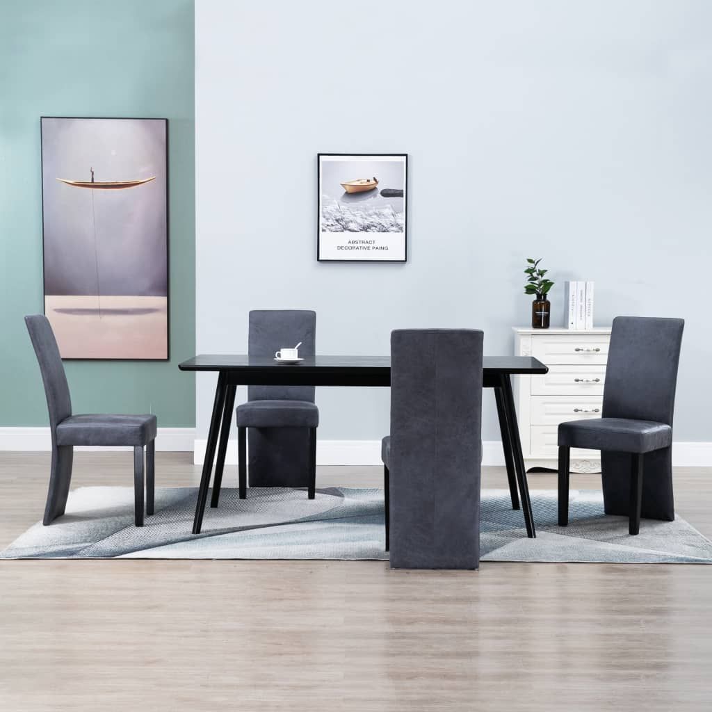Home > Dining Chair Set of 4 Grey Faux suede and wood Standard Modern