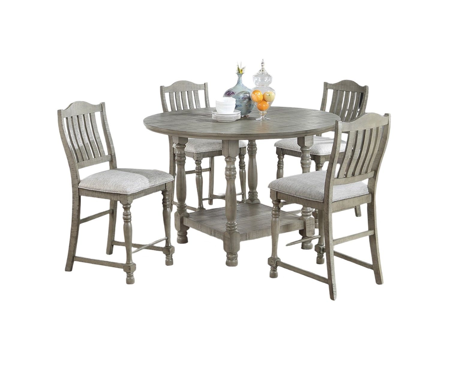Home > Dining Table 4x High Chairs 5pcs Counter Height Dining Set Light Grey Finish Dining Room Furniture Plush Upholstered Fabric Seat Contemporary Style