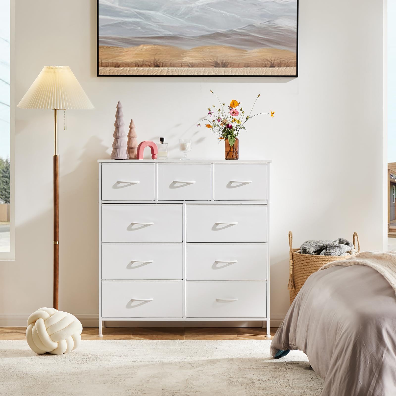 Dresser For Bedroom With 9 Fabric Storage Drawer Wardrobe Tall Chest Organizer Closet Adult Kids Clothes Cabinet Furniture