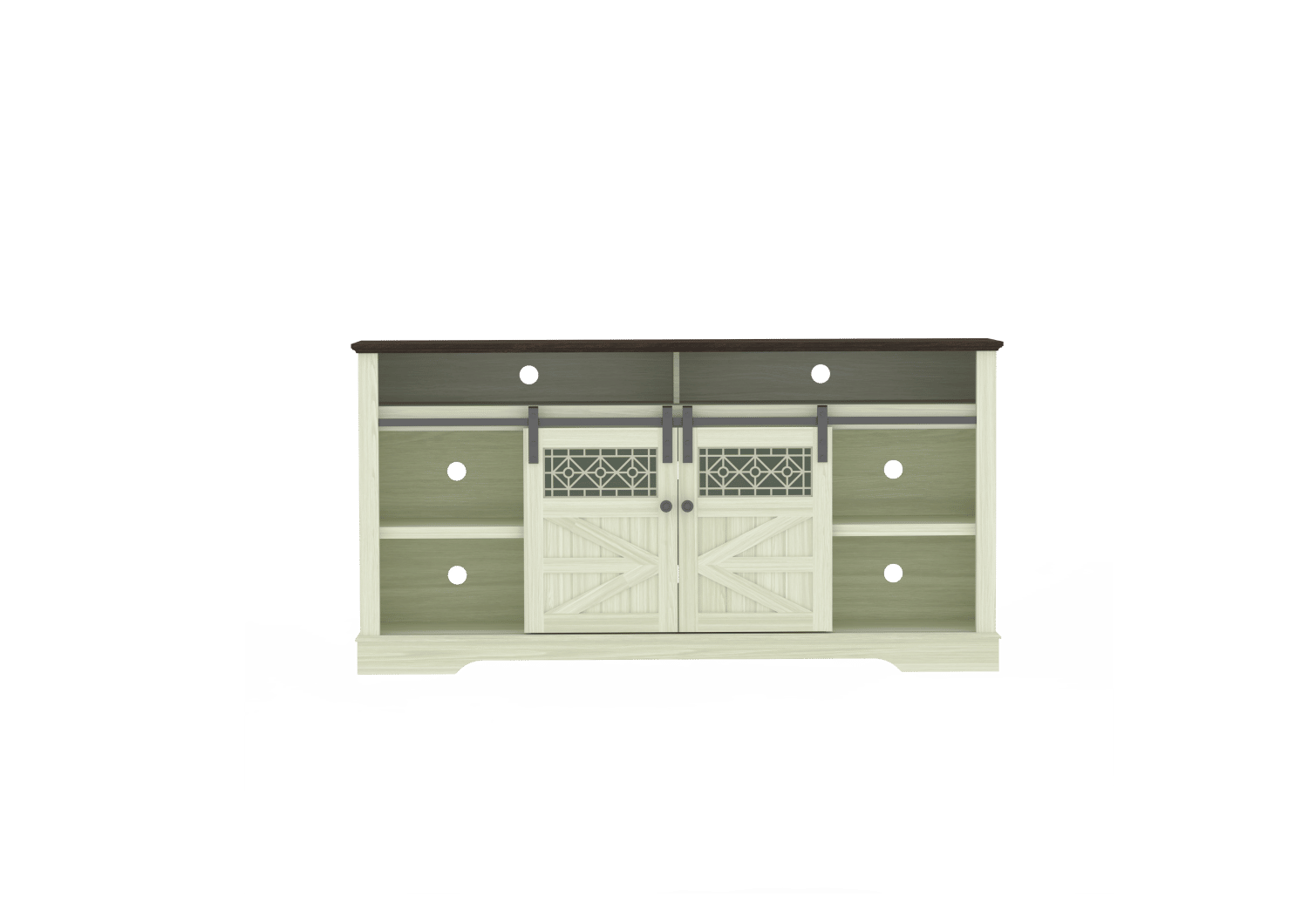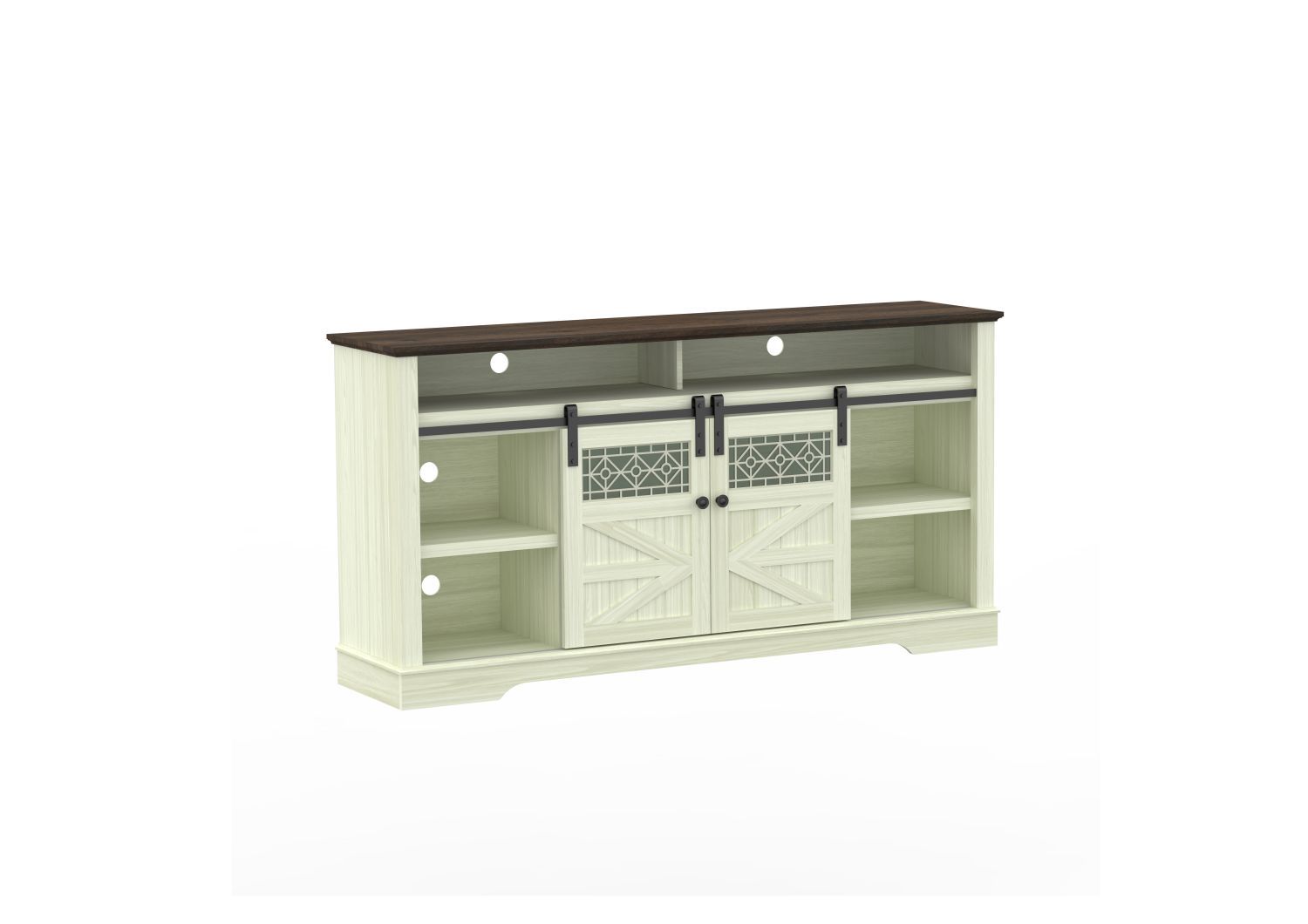 The TV stand has two Sliding barn doors with high quality steel bars to make the doors slide smoothly. The internal storage space of the TV Stand has adjustable dividers to provide abundant storage or display space for daily items, game boxes, decorations, etc.