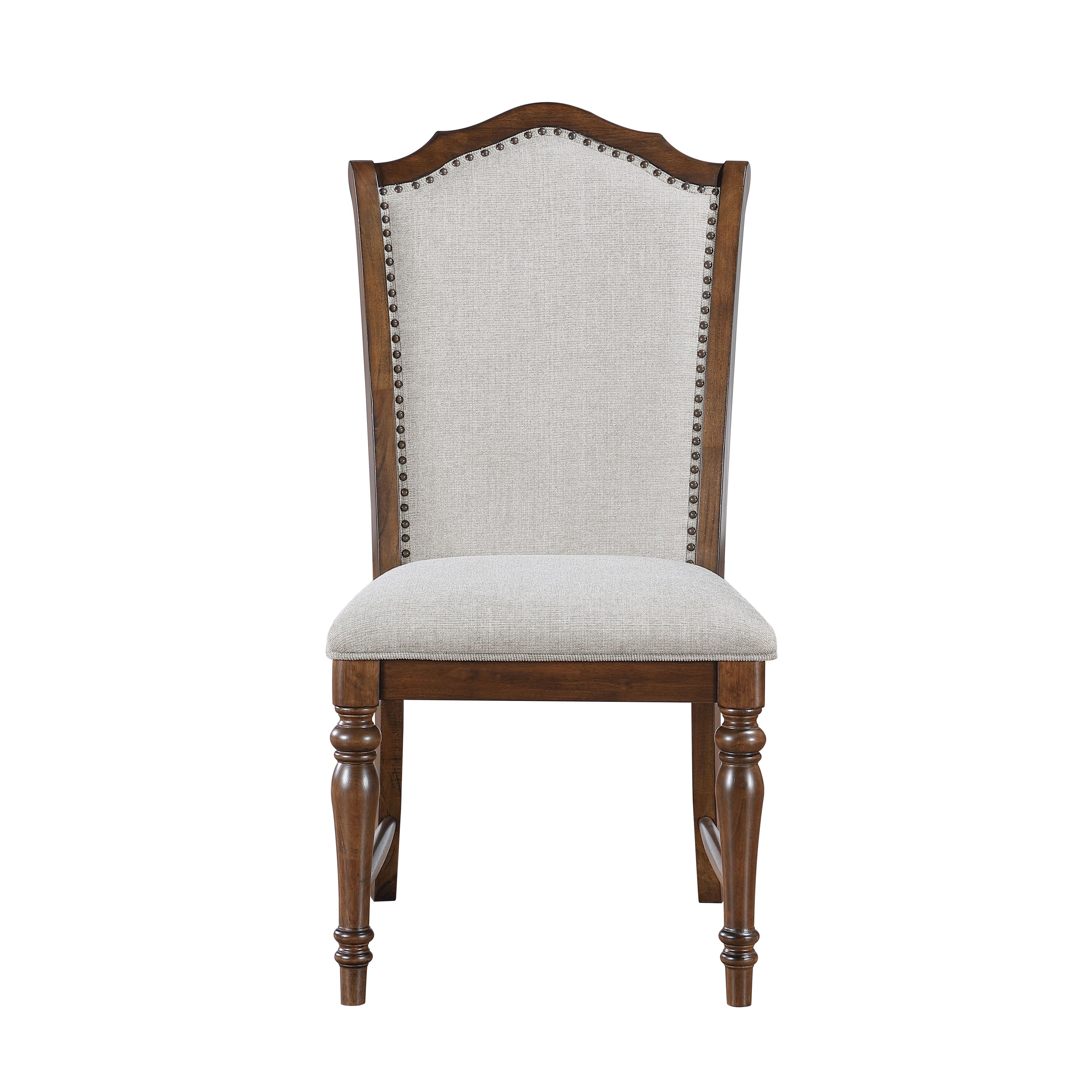 The subtle traditional design defines the profile of the Rexford Collection creates a timeless addition to your home's formal dining space. The wood-framed side chair features nailhead trim, and gray fabric upholstered seat and back. Cherry veneer is highlighted with a cherry finish solidifying the collection's classic aesthetic.PRODUCT DIMENSIONS: Overall Dimension: 21.5" x 27" x 43"HSeat Width: 21.5"Seat Depth: 17.5"Seat Height: 20.5"Listing Includes: Set of 2 Side Chairs Only.Dining Table and Armchairs: Not includedSimple Assembly Require.