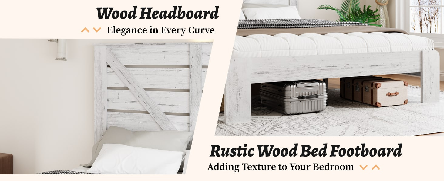 Home > Full Bed Frame Headboard , Wood Platform Bed Frame , Noise Free,No Box Spring Needed and Easy Assembly Tool,Large Under Bed Storage,White