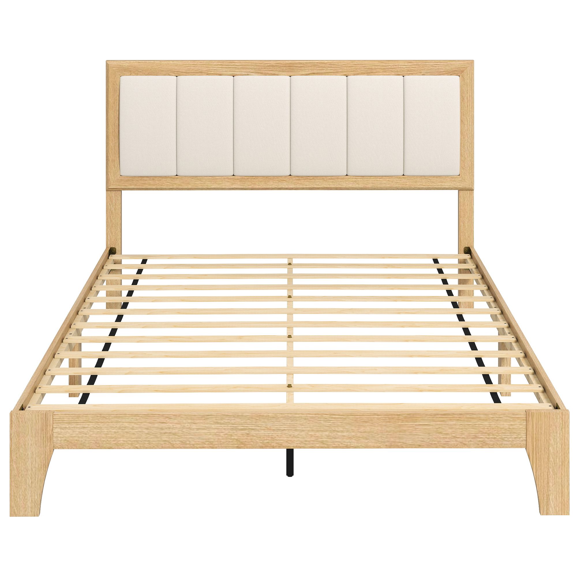 1.- Stylish Comfort & Mid-Century Charm: Designed with an upholstered headboard, the full bed frame offers comfort for lounging or reading. The blend of linen-feel fabric and wood grain frame brings a mid-century modern esthetic, enhancing bedroom decor