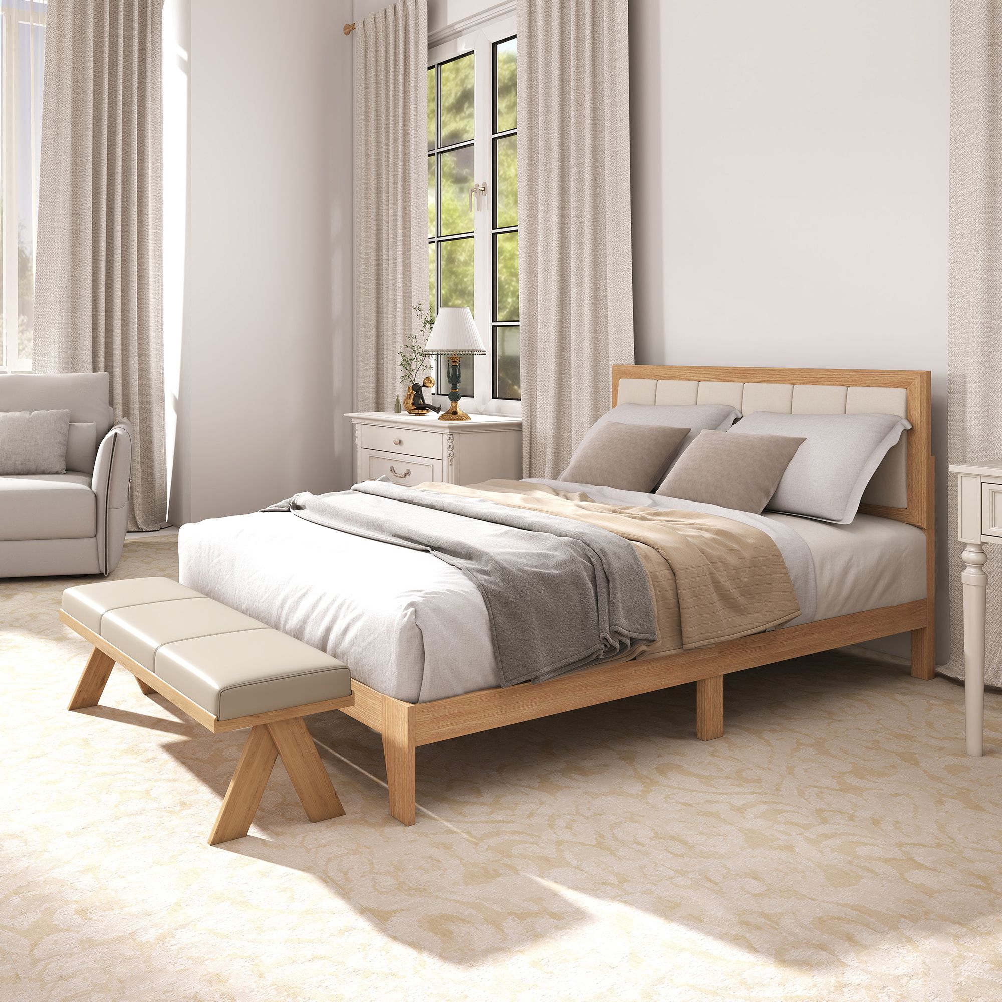 Upgrade your bedroom through the full size bed frame with headboard from HOMCOM, blending a chic beige linen-feel upholstered headboard with a stylish wood grain frame. Enjoy extra space with 6.7" of space beneath for small storage, and also allow a sweeping robot to glide underneath effortlessly for easy cleaning. The robust structure supports up to 726 lbs., ensuring a stable night's sleep on this elegant platform bed frame.