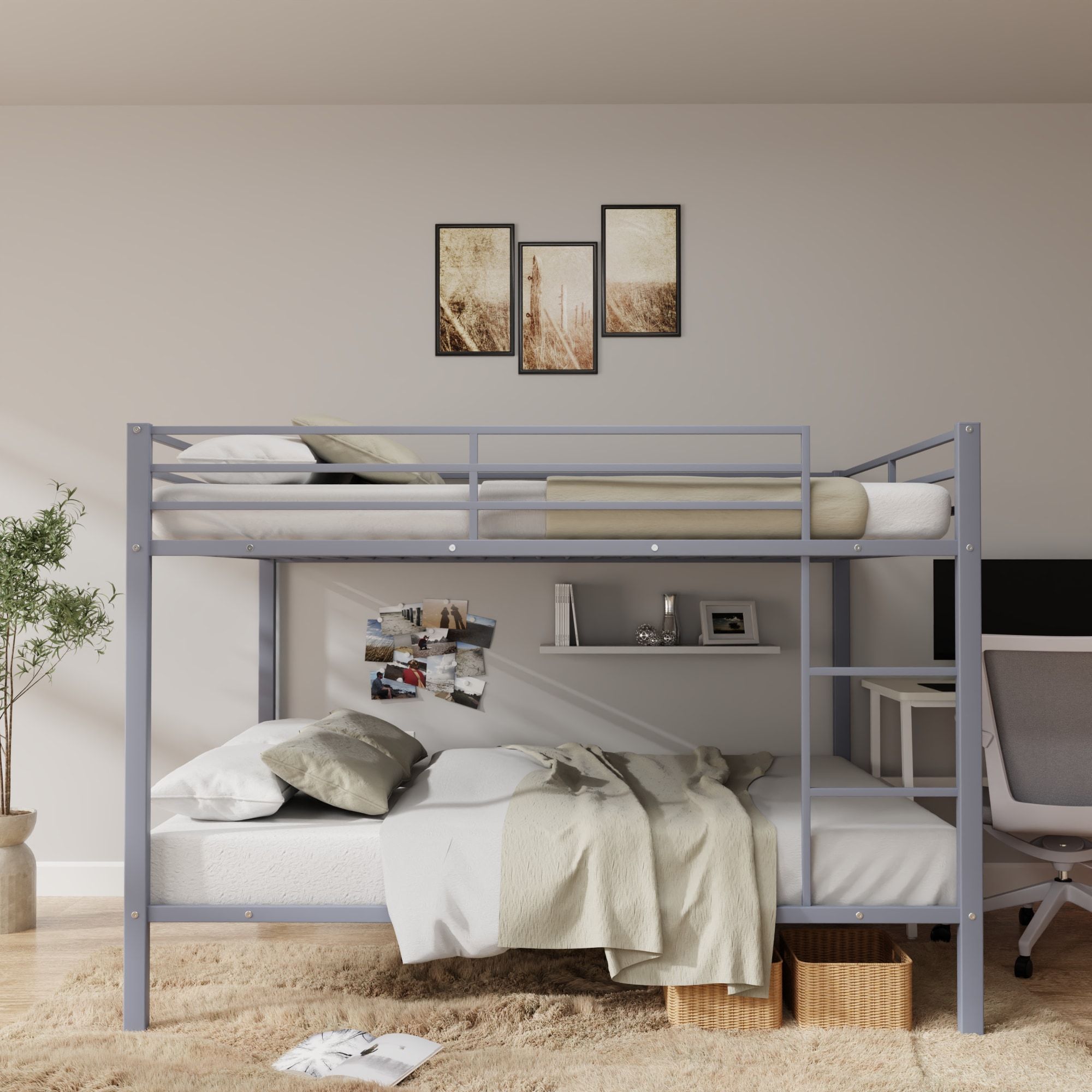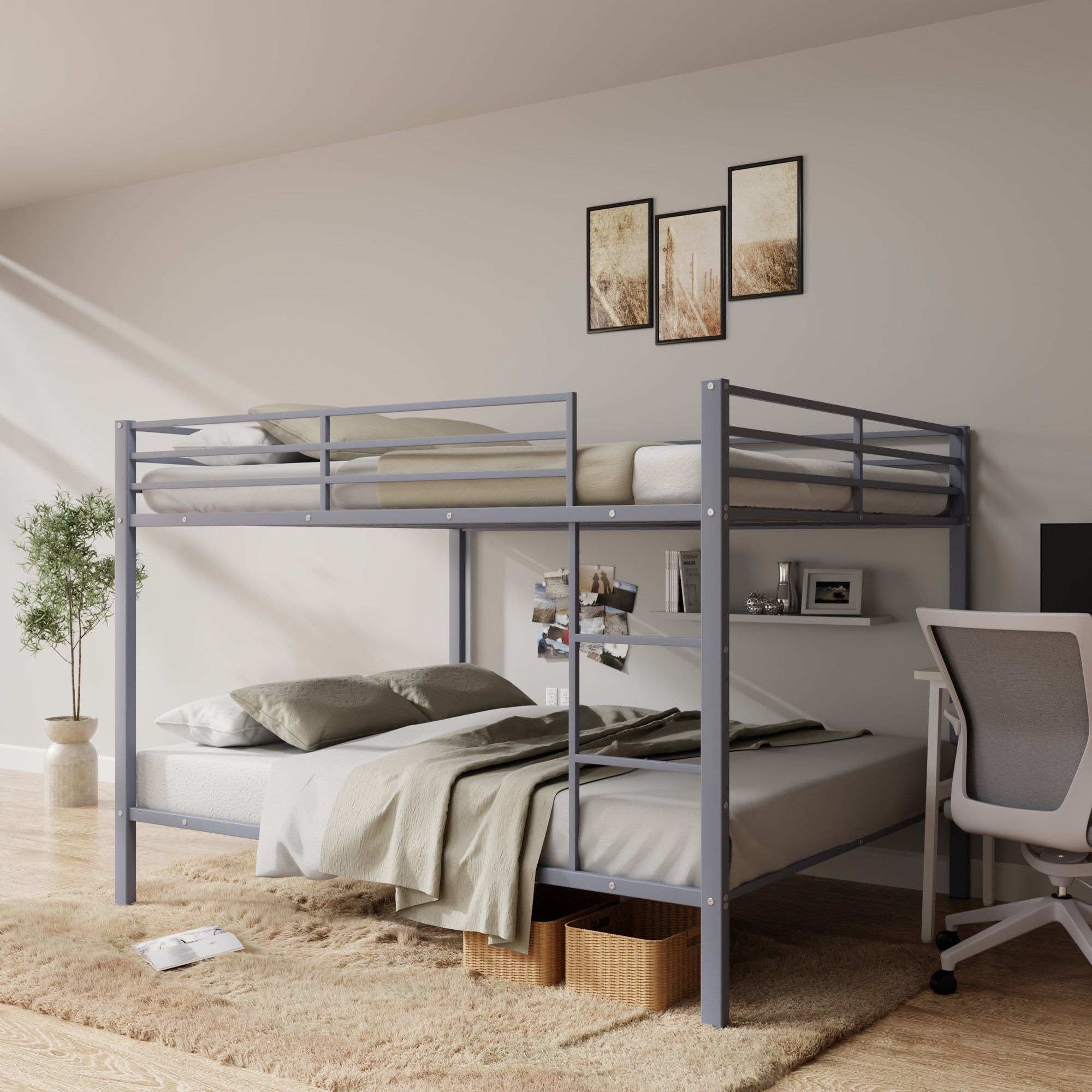 Full Over Full Bunk Bed, Heavy Duty Metal Bunk Bed Frame with Built-in Ladder and Safety Guard Rail, Low Metal Bunk Bed Frame for Kids Full Over Full Bunk Bed, Heavy Duty Metal Bunk Bed Frame with Built-in Ladder and Safety Guard Rail, Low Metal Bunk Bed Frame for Kids Full Over Full Bunk Bed, Heavy Duty Metal Bunk Bed Frame with Built-in Ladder and Safety Guard Rail, Low Metal Bunk Bed Frame for Kids