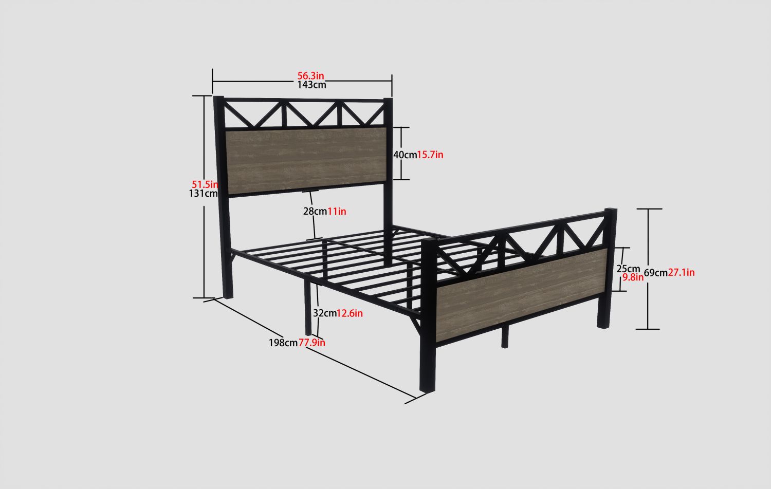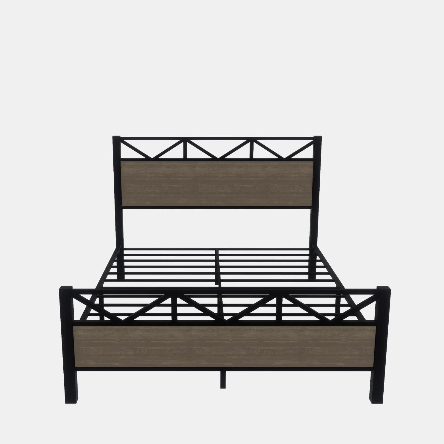Industrial Style: The headboard of this bed frame is made of wood with a rustic vintage finish, which can add warmth and character to your bedroom décor. The wood material also ensures durability and long-lasting quality. It is the only choice worth having.Sturdy And Durable: This sturdy bed frame is made of metal slats, side rails, multiple support legs, and a one-piece structure in the middle of the bed frame, which is very strong and has excellent load-bearing capacity.With Headboard and Footboard: This bed is equipped with a headboard and footboard, which can play a decorative effect, and can also fix the mattress to prevent it from scratching and reduce unnecessary troubles.Easy to Assemble: This type of bed frame is easy to assemble and can be done with minimal tools and time. This is because the frame comes with all the necessary parts and instructions for easy setup.The bed will support up to 440 pounds.