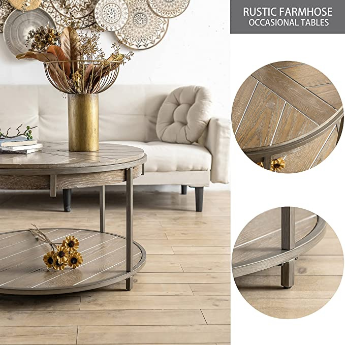 1.ALL SOLID WOOD AND STURDY, Round coffee table is made of solid wood, whether it is table legs or table top, it ensures structural stability and can move freely. Coffee table surface is decorated with white lime to effectively extend its service life.
