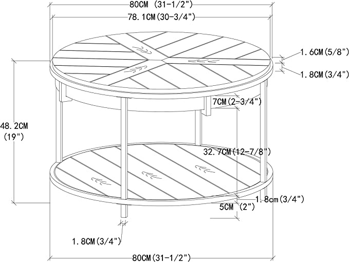 2.SPACE SAVING, This circle coffee table low table with a desktop diameter of 35.3 "and a height of 17.8", is suitable for placing in the middle of the living room, study, game room and bedroom. The round coffee table for living room would't take up too much space in your apartment, which is very suitable for storing daily necessities.