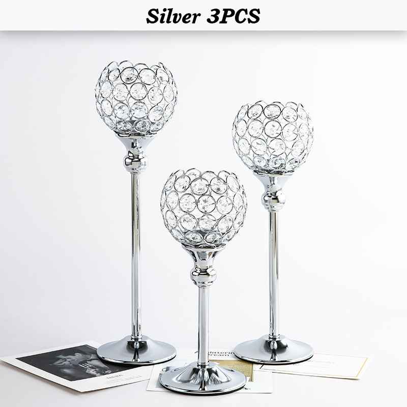 Home > Gold/Silver Crystal Candle Holder Pillar Metal Tealight Candlestick Wedding Table Centerpiece Party Christmas Home Desktop Decor